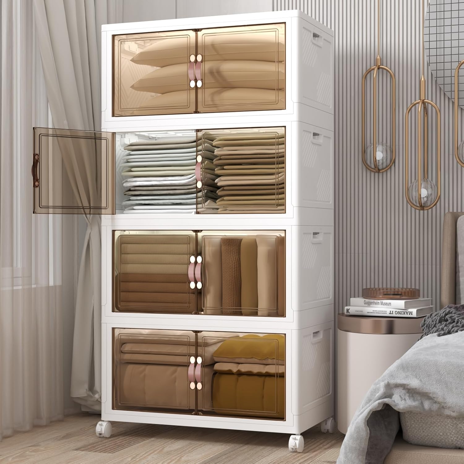 Extra Large Stackable Storage Bins with Lids and Wheels, Foldable Collapsible Closet Organizers,672QT-168QT/42GAL*4Pack Plastic Stackable Storage drawers for bedroom Dorm