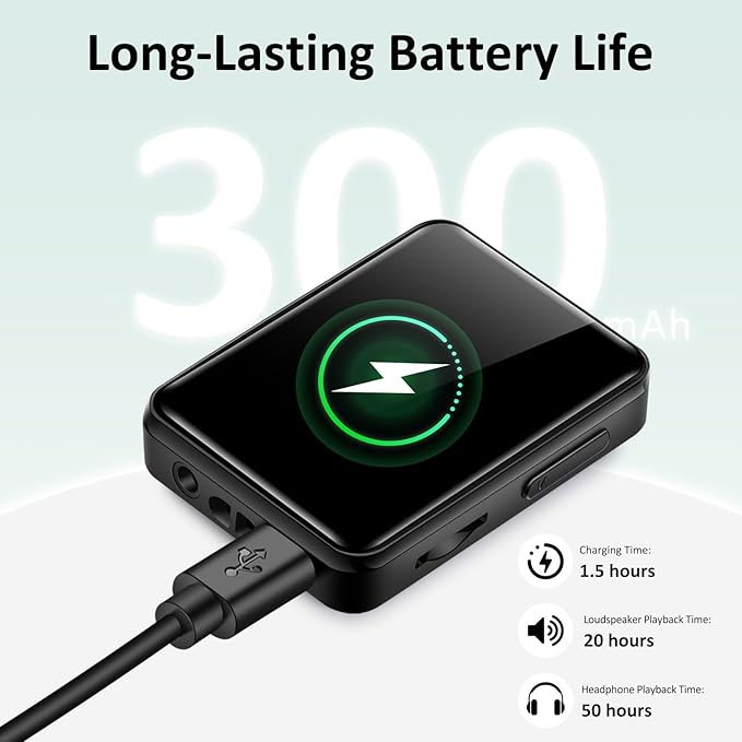 • 【Long-lasting battery life】 Built-in large-capacity battery, it can be used for a long time on a single charge, only 1.5 hours to fully charge, 20 hours with headphones and 4 hours with speakers. Say goodbye to the worry of mobile phone power consumption and focus on enjoying pure music time