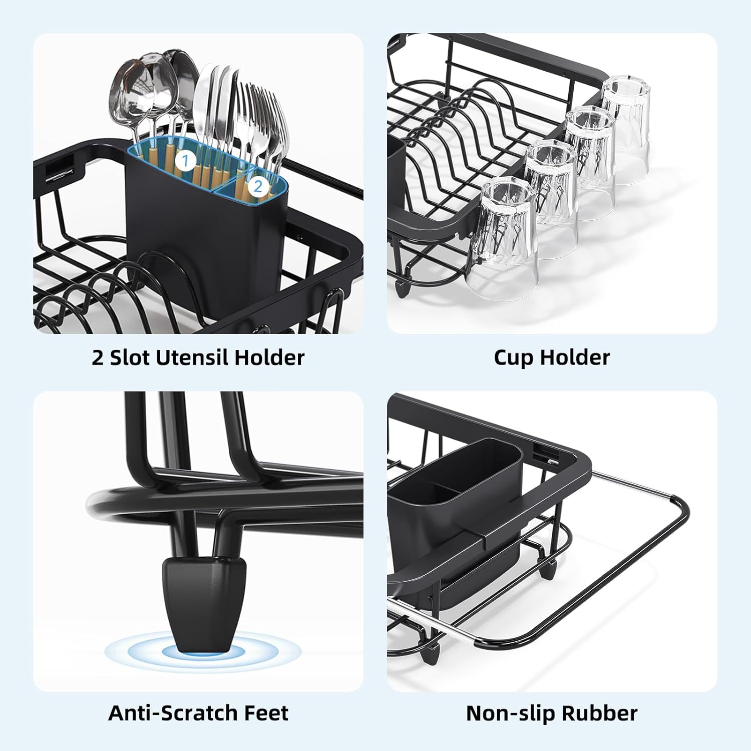- [ 3 IN 1 MULTI-USAGE ] Urackify dish drying rack combined with 3-IN-1 design, it can be used in the sink or expandable over the sink, on the countertop with a mat on the bottom(mat not included), meet your different needs for tableware storage and drainage.