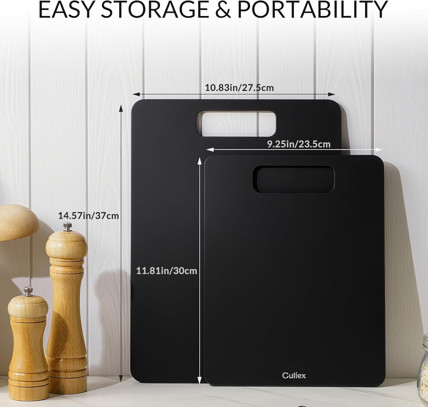 Cutting Boards for Kitchen [Set of 2], Wood Fiber Composite Cutting Board, Dishwasher Safe, Non Slip Non Toxic Chopping Board for Meat Vegetables Fruit Cheese - Black