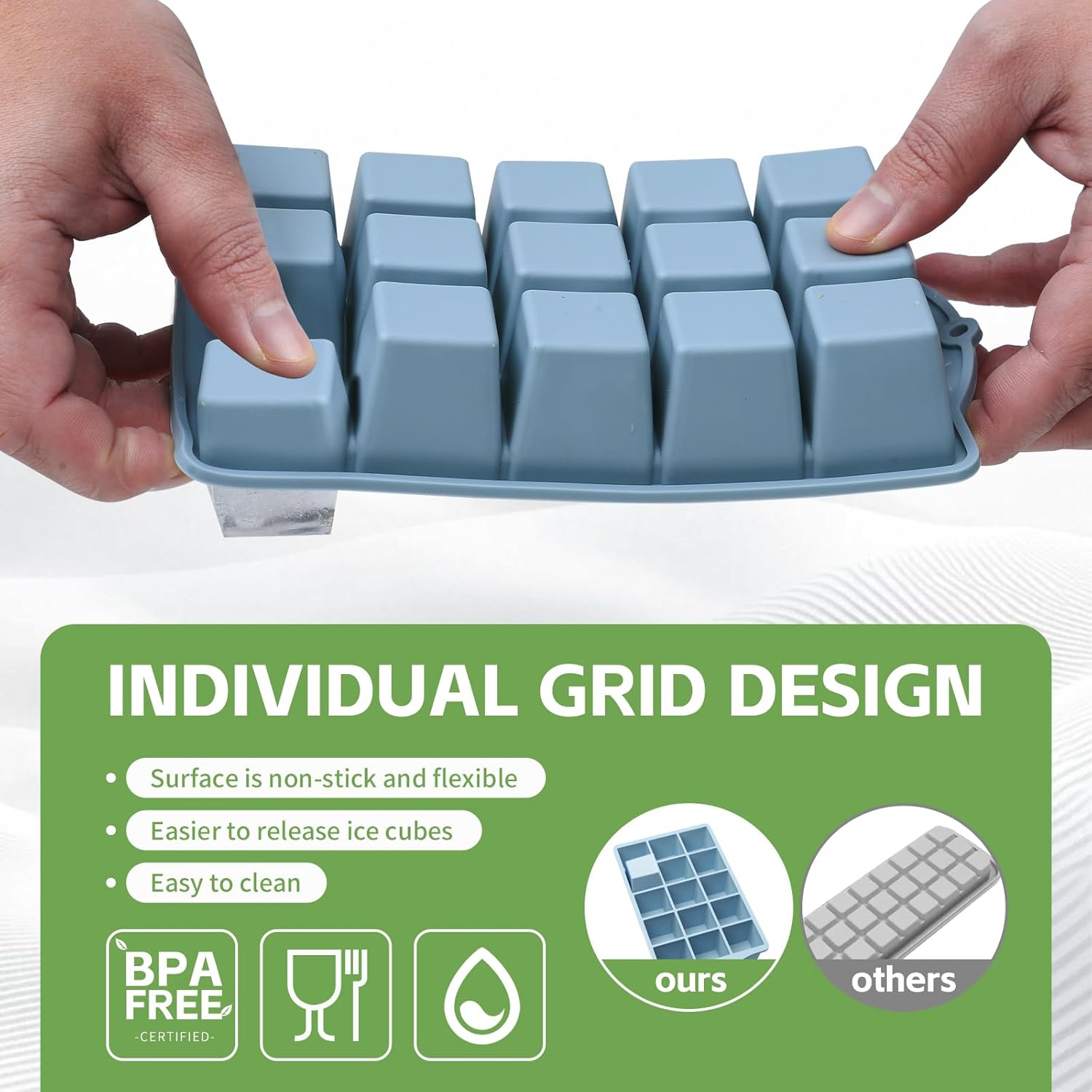 - 【Versatile Ice Tray Silicone for All Occasions】This 2-pack silicone ice trays for freezer make 30 reusable ice cubes —great for gatherings or daily use. But it’s not just for ice! Use it to portion baby food, shape chocolates, or create butter cubes. The flexible silicone allows easy removal of any frozen treat.