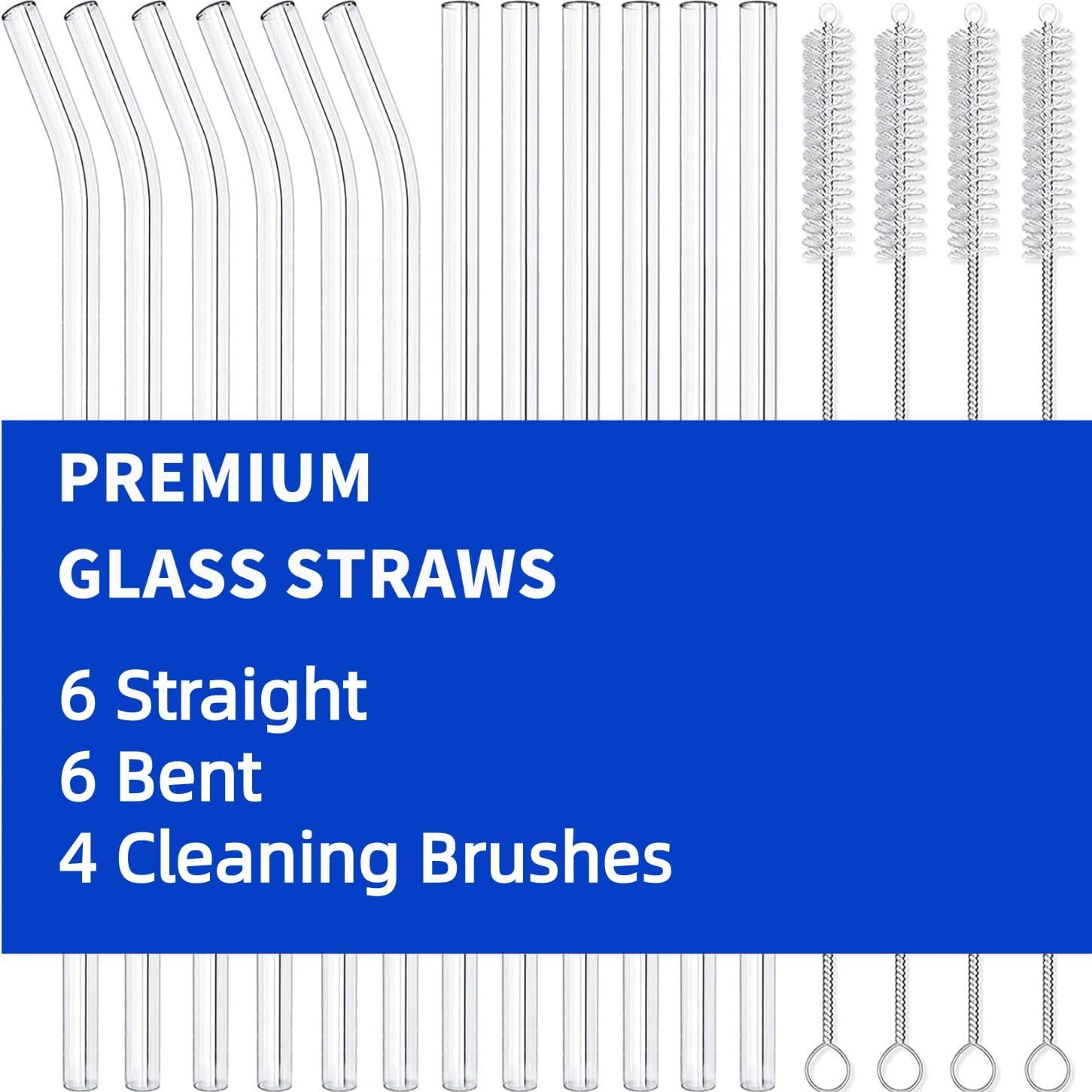 16 Pack Reusable Glass Straws,SIZE(8.5''x10 MM),Set of 6 Straight and 6 Bent with 4 Cleaning Brush,Perfect for Smoothies,Tea, Juice