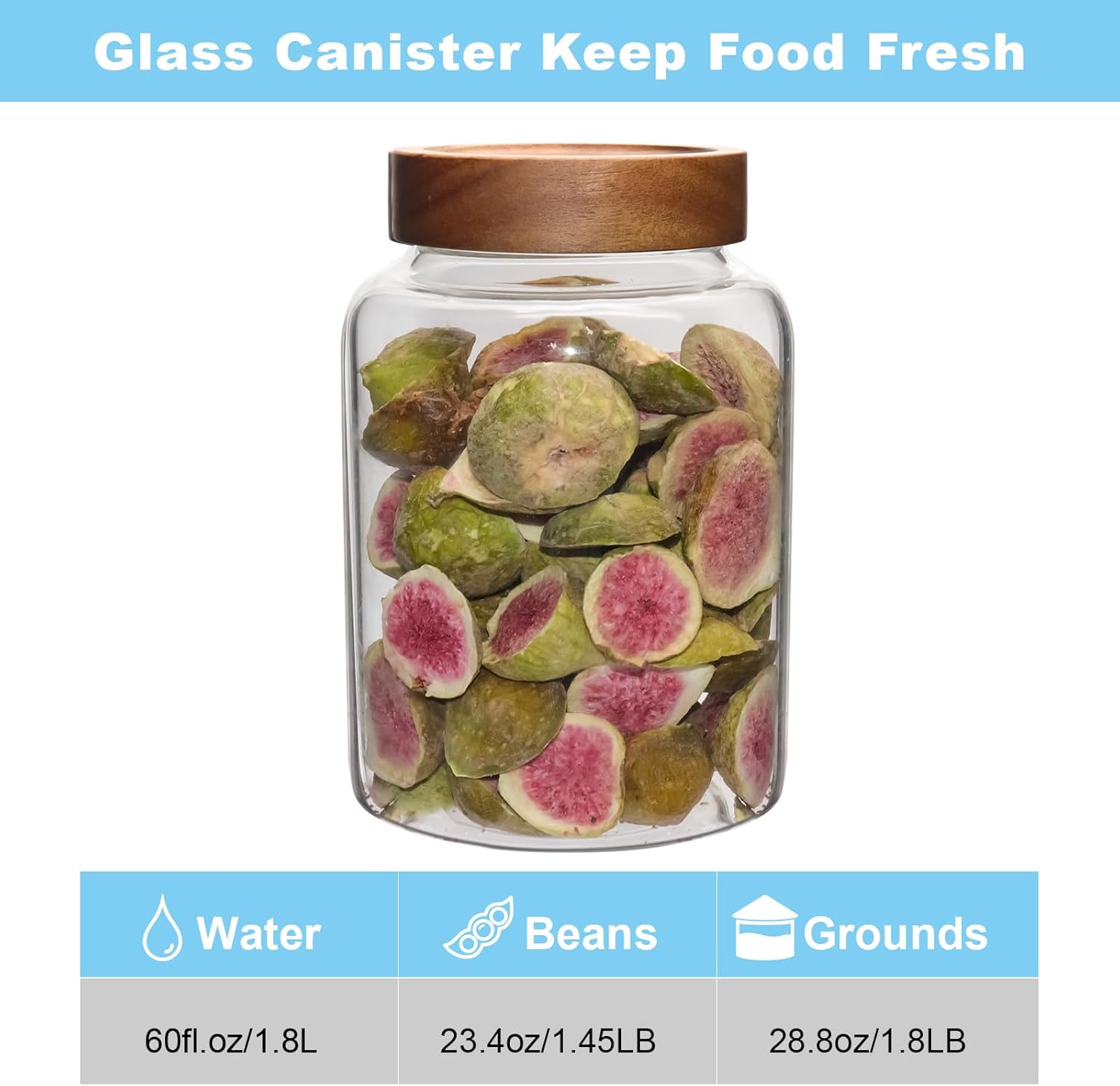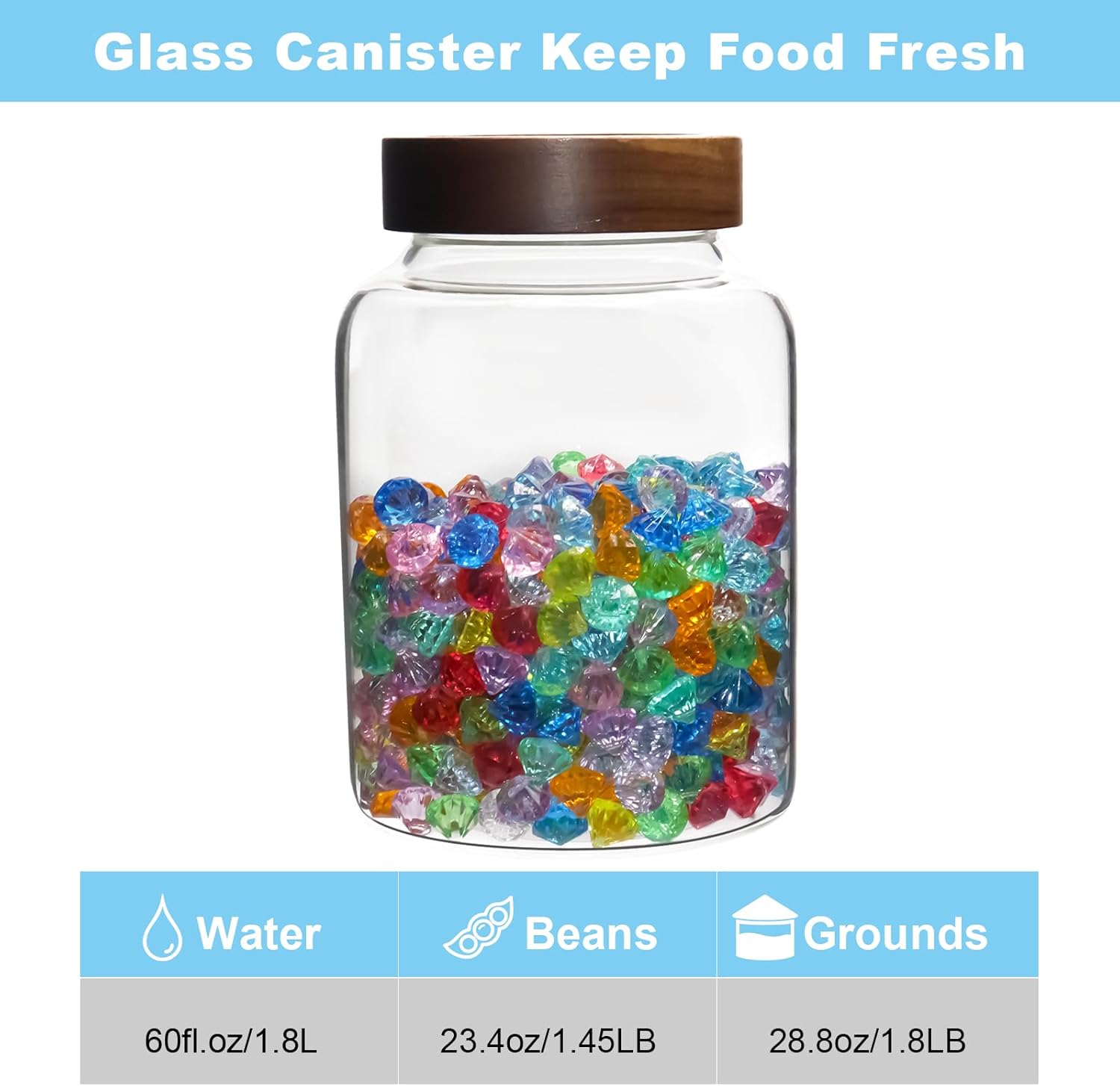 Glass Spice Jar Coffee Sugar Container Airtight Glass Jar Food Storage Canisters Bottle for Kitchen Seasoning Tea Herb Overnight Oats Bar Parfait Snacks (1800ml(60oz)-1 pack-no spoon)