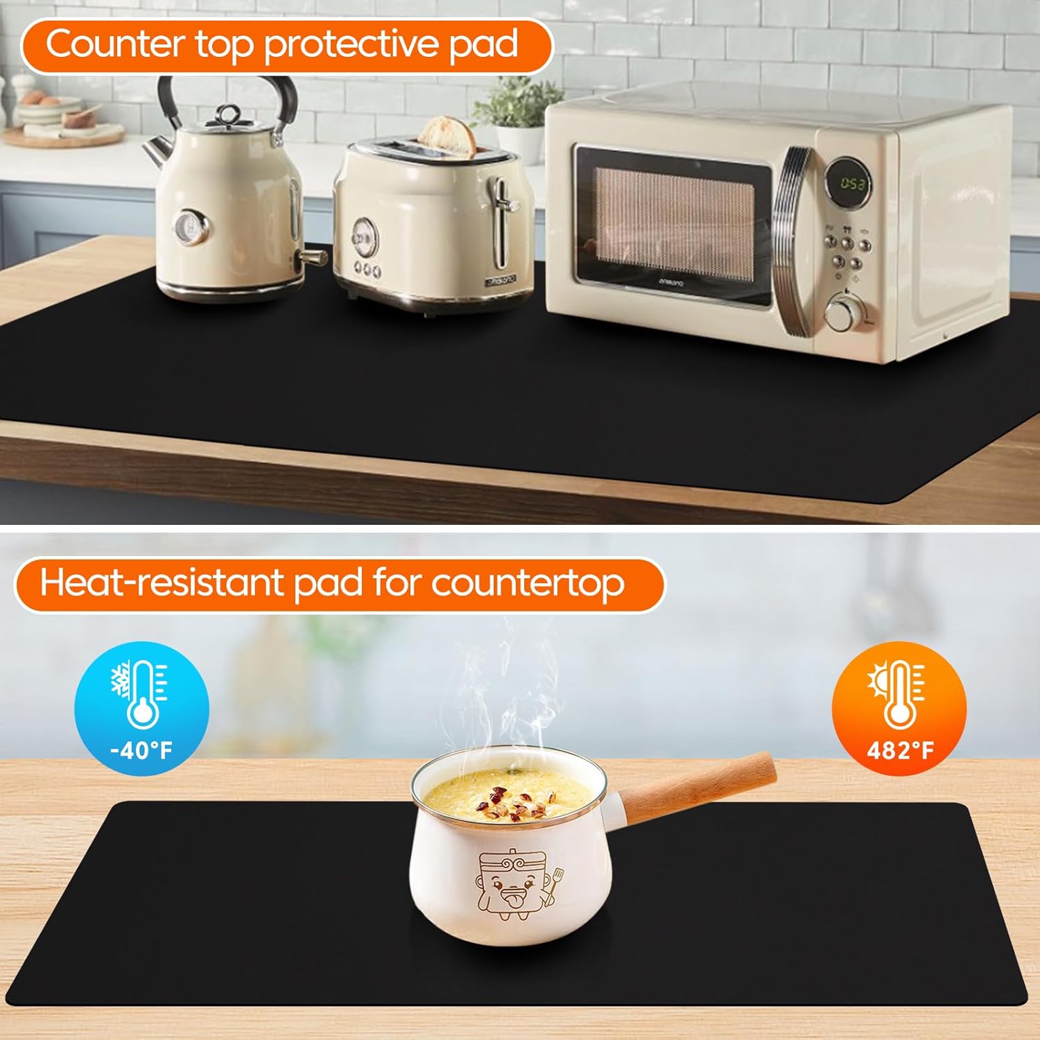 Extra Large Silicone Mats for Kitchen Counter, Dining Table Top Protector, Workbench Countertop Protector, Skin-Friendly Surface Heat Resistant Mat, Freely Cuttable(Black, 24" x 80" x 1.6mm)