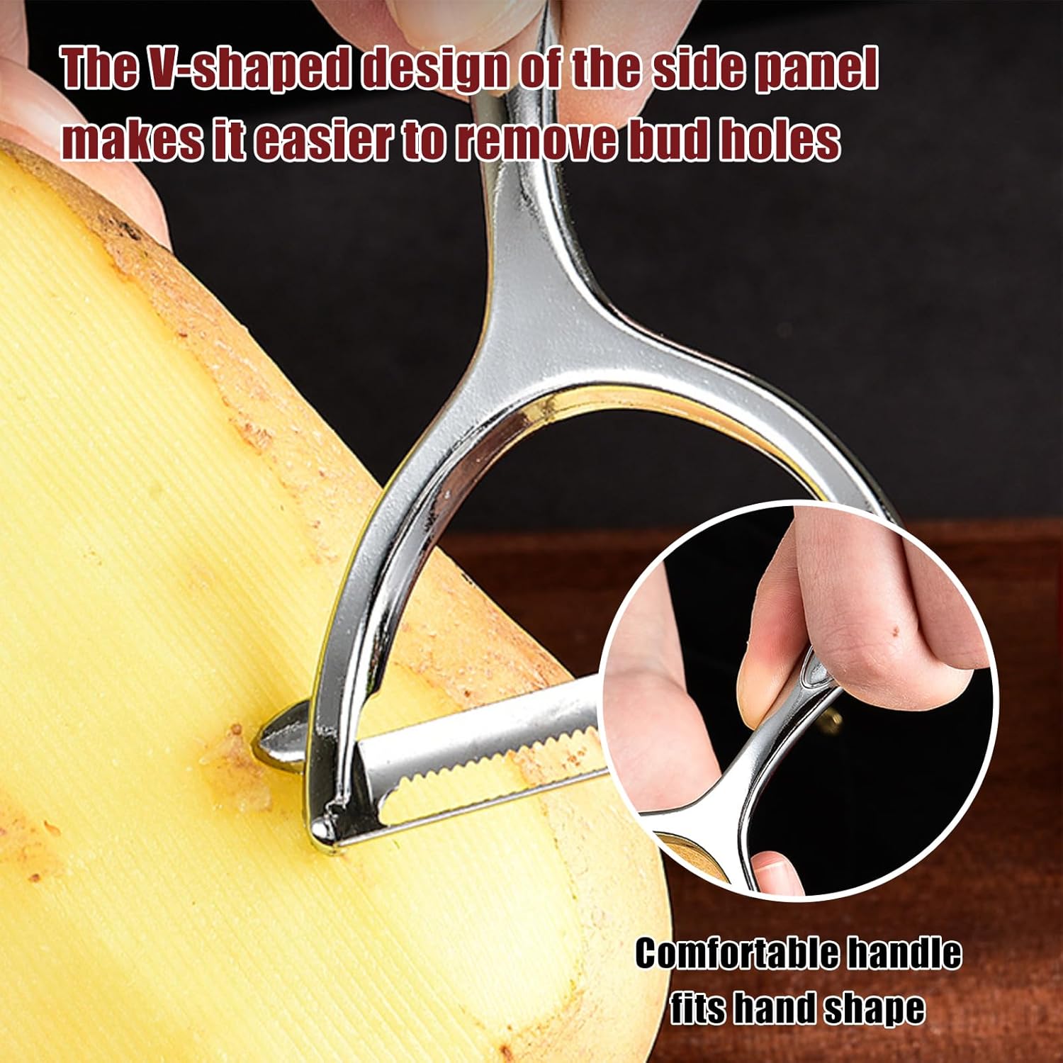 - 【4-in-2 Kitchen Marvel: Spiral, V-Cut, Scoop & Peeler】Say goodbye to multiple single - task tools! Our all - in - one kitchen set combines a razor - sharp spiral cutter, a precise V - shaped tool, a crinkle - cut knife, and a sturdy stainless steel scoop. Whether you're a home cook, food stylist, or party host, it's your go - to for effortless food prep and stunning presentations.