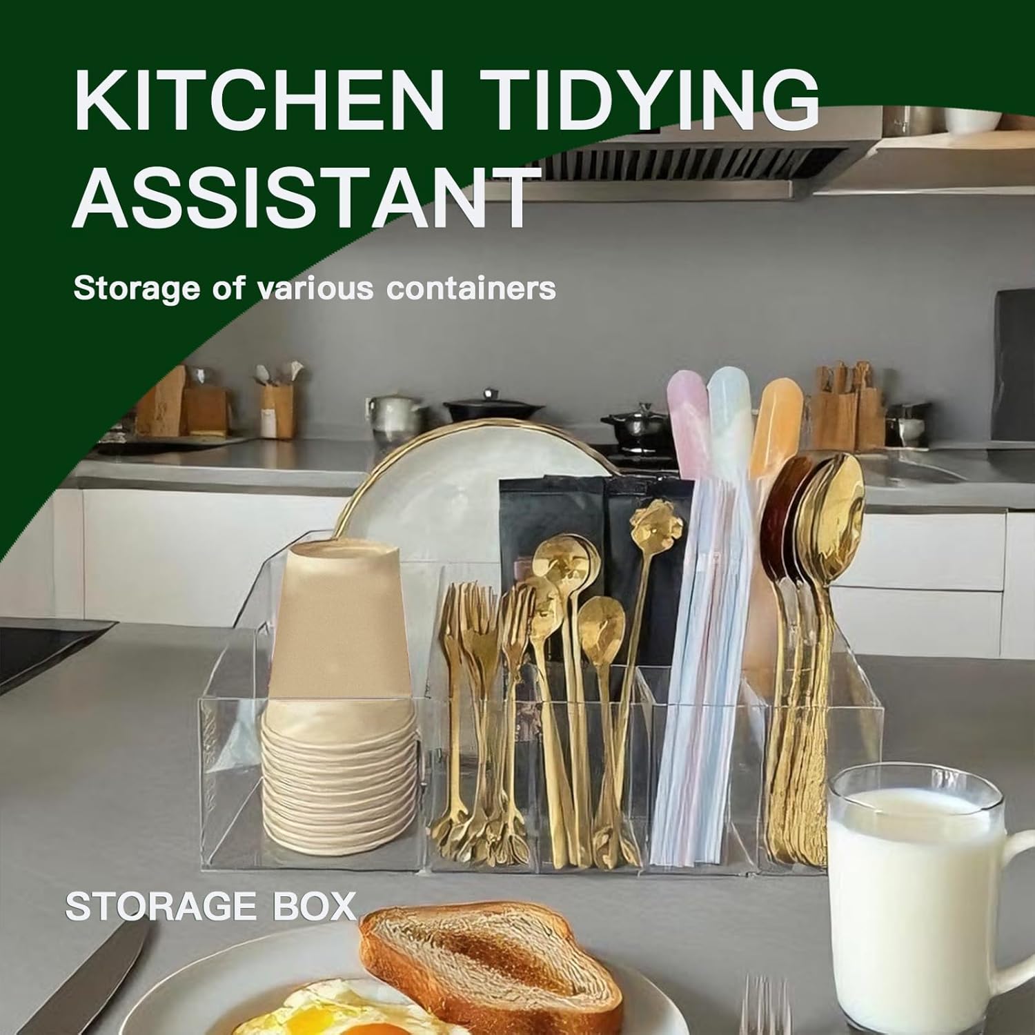 Utensil Holder for Party, Plastic Silverware Holder and Acrylic Cutlery Organizer for Paper Plates, Napkins, Cups, and Silverware - Countertop Caddy for Camping, Picnic, Buffet, Table Entertaining