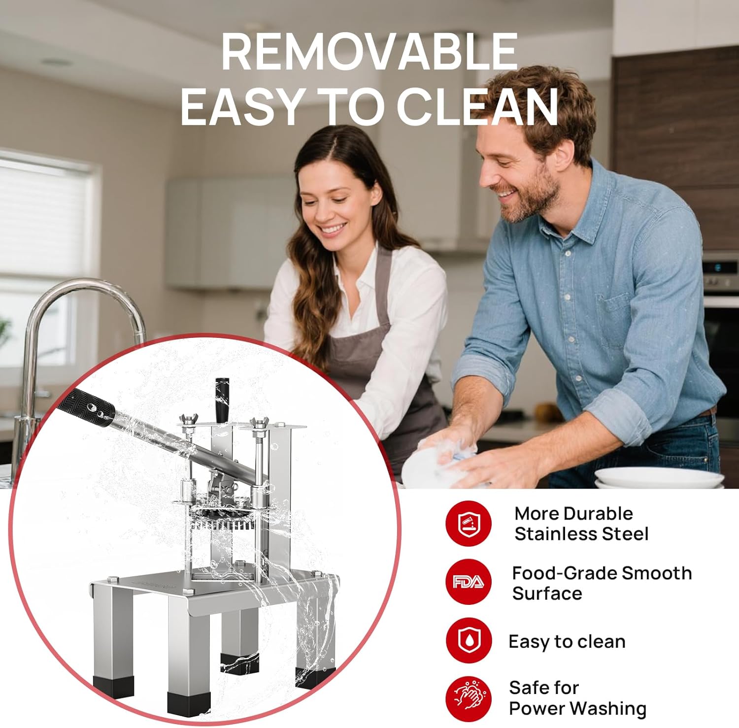 - 【Easy to Use and Clean】This heavy-duty stainless steel vegetable cutter comes with an extended handle that cleverly utilizes the lever effect to easily cut various vegetables, saving time and effort for quick meal preparation. In addition, its smooth stainless steel surface is paired with our complimentary cleaning brush, making it more convenient for you to rinse and clean.
