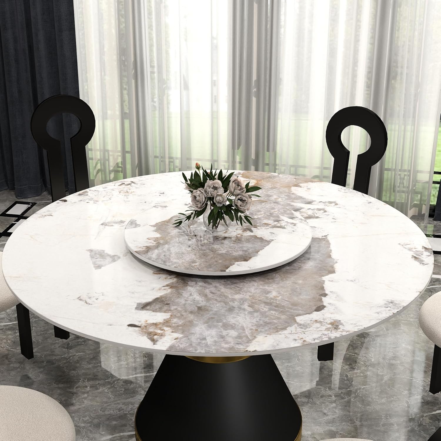 - Spacious & Versatile Centerpiece: Holds heavy multi-tiered cakes, large vases, and decor effortlessly. The sturdy sintered stone (31.5" diameter) doubles as a decorative turntable for kitchens, buffets, and event centerpieces.