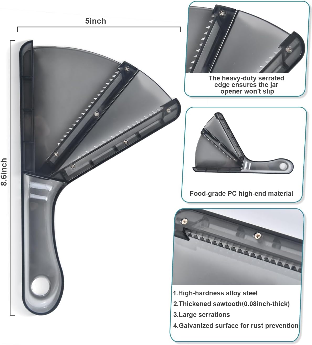 - 💖Our Advantages: This jar opener is made of high-quality food-grade PC material, with a jar opener gripper featuring 0.08inch-thick high-hardness alloy steel teeth. This ensures the lid opener won’t slip, making it a reliable kitchen gadget
