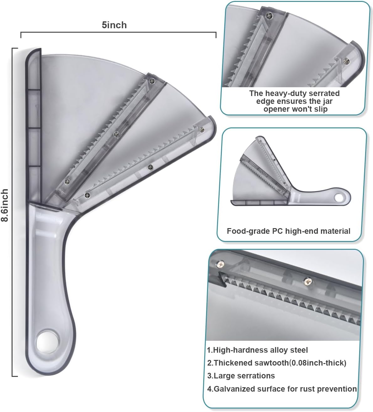 - 💖Our Advantages: This jar opener is made of high-quality food-grade PC material, with a jar opener gripper featuring 0.08inch-thick high-hardness alloy steel teeth. This ensures the lid opener won’t slip, making it a reliable kitchen gadget
