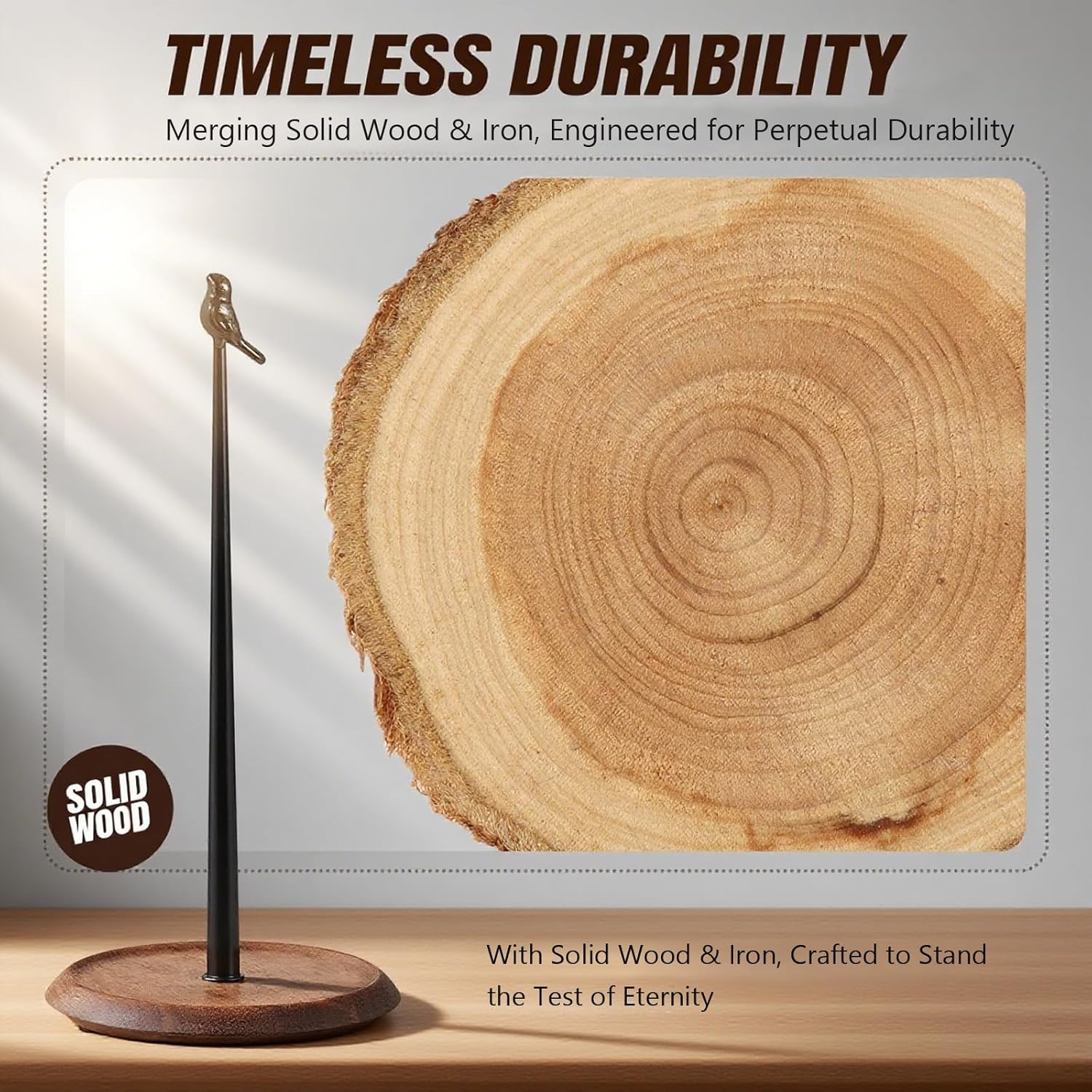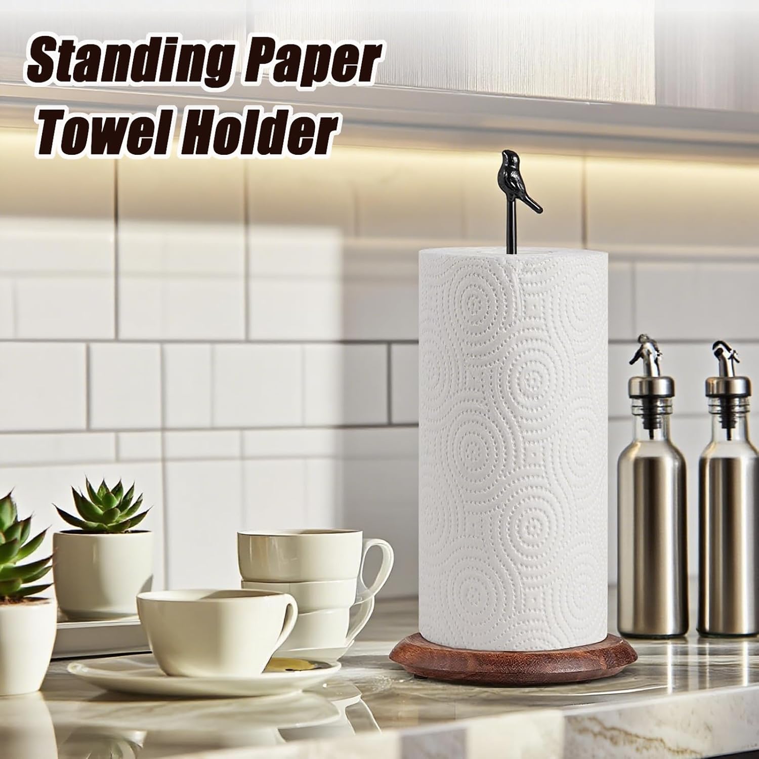 - Premium Material Combination: This paper towel holder is constructed from durable iron, ensuring a stable structure. The base is crafted from premium wood, adding a natural touch and providing excellent stability, making it easy to withstand frequent daily use.