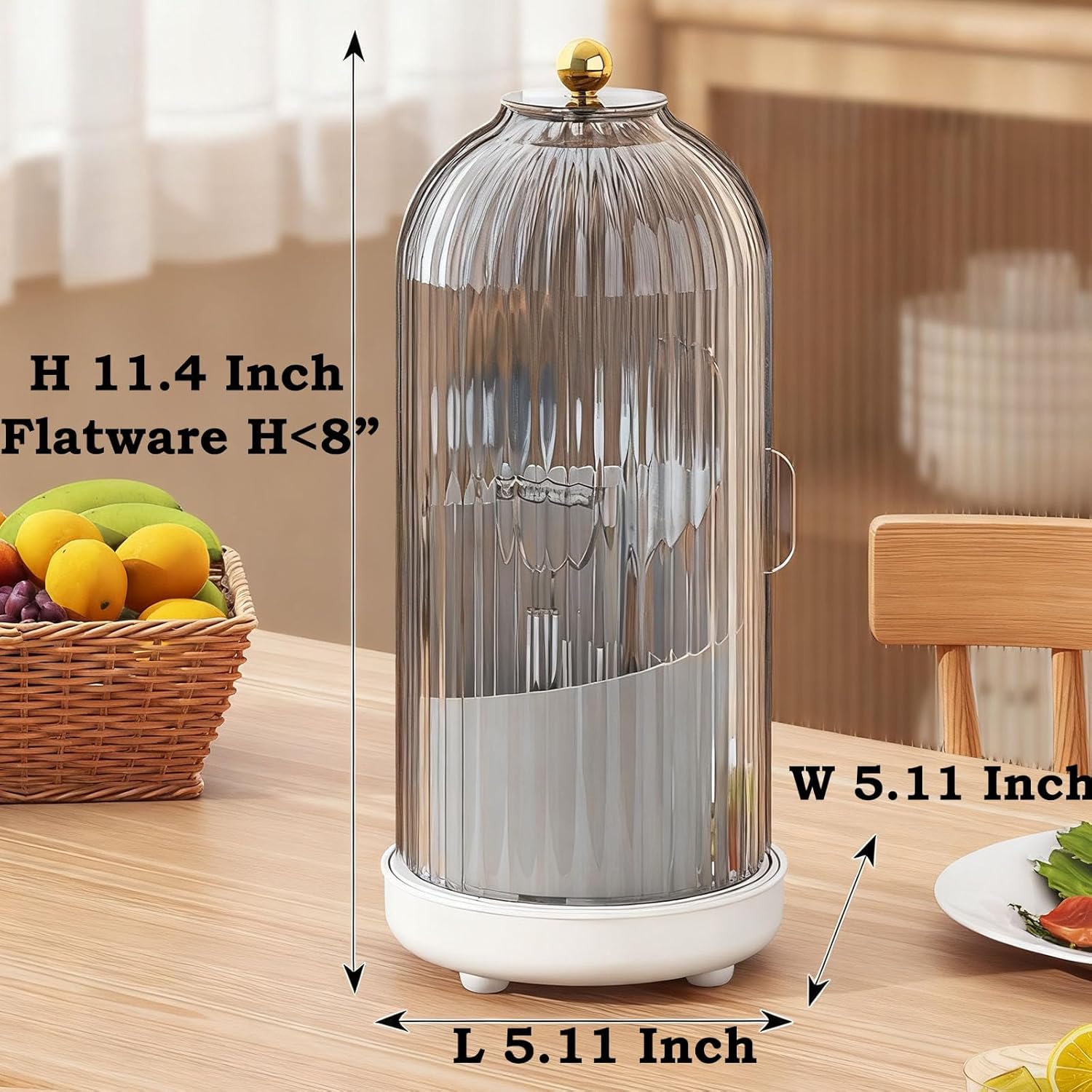 JEESA Utensil Holder with Lid, 360° Rotating Flatware Organizer for Cutlery Spoon Fork(H Less 8"), Silverware Caddy Organizer Drainage Dustproof Flatware Holder Kitchen Countertop Storage, Gray