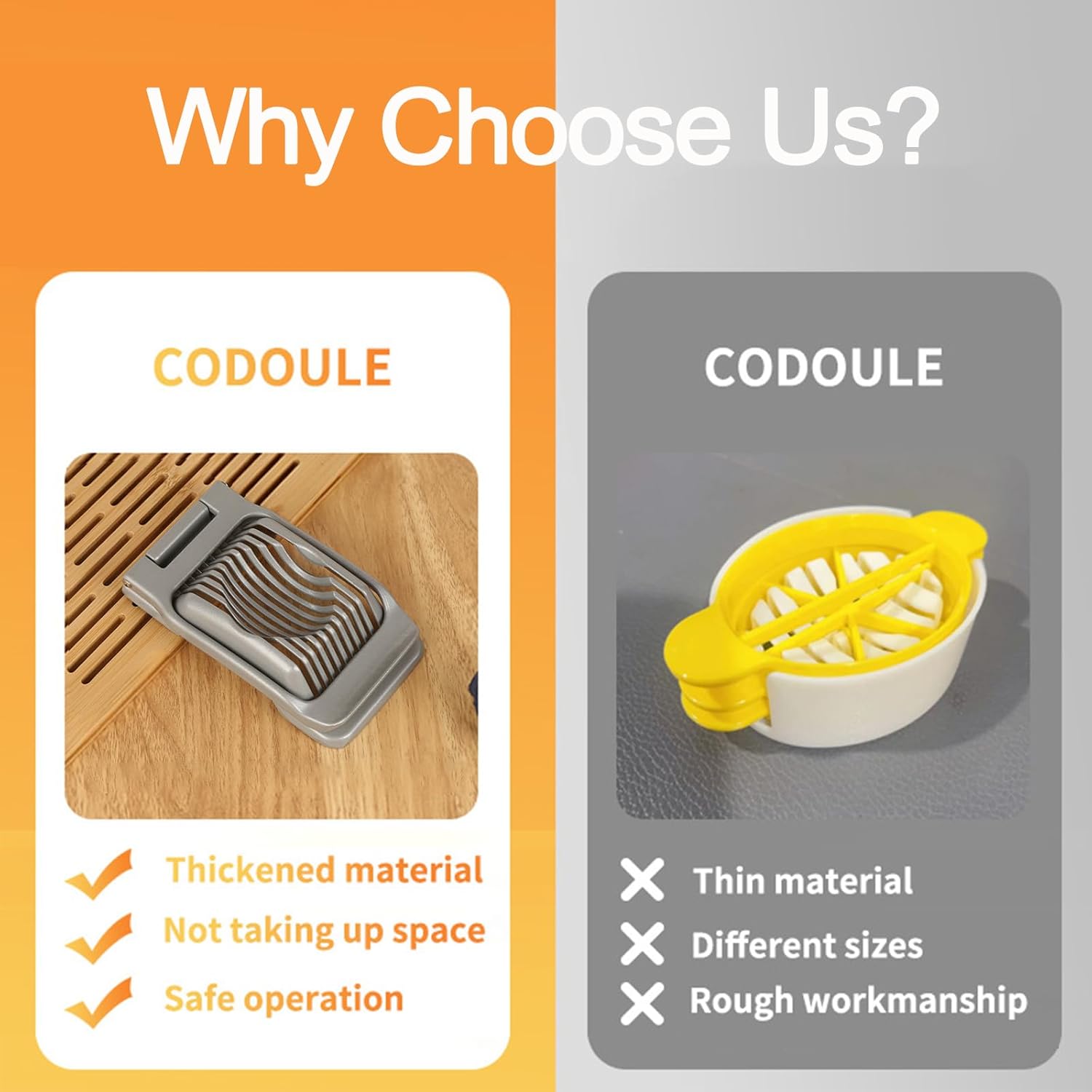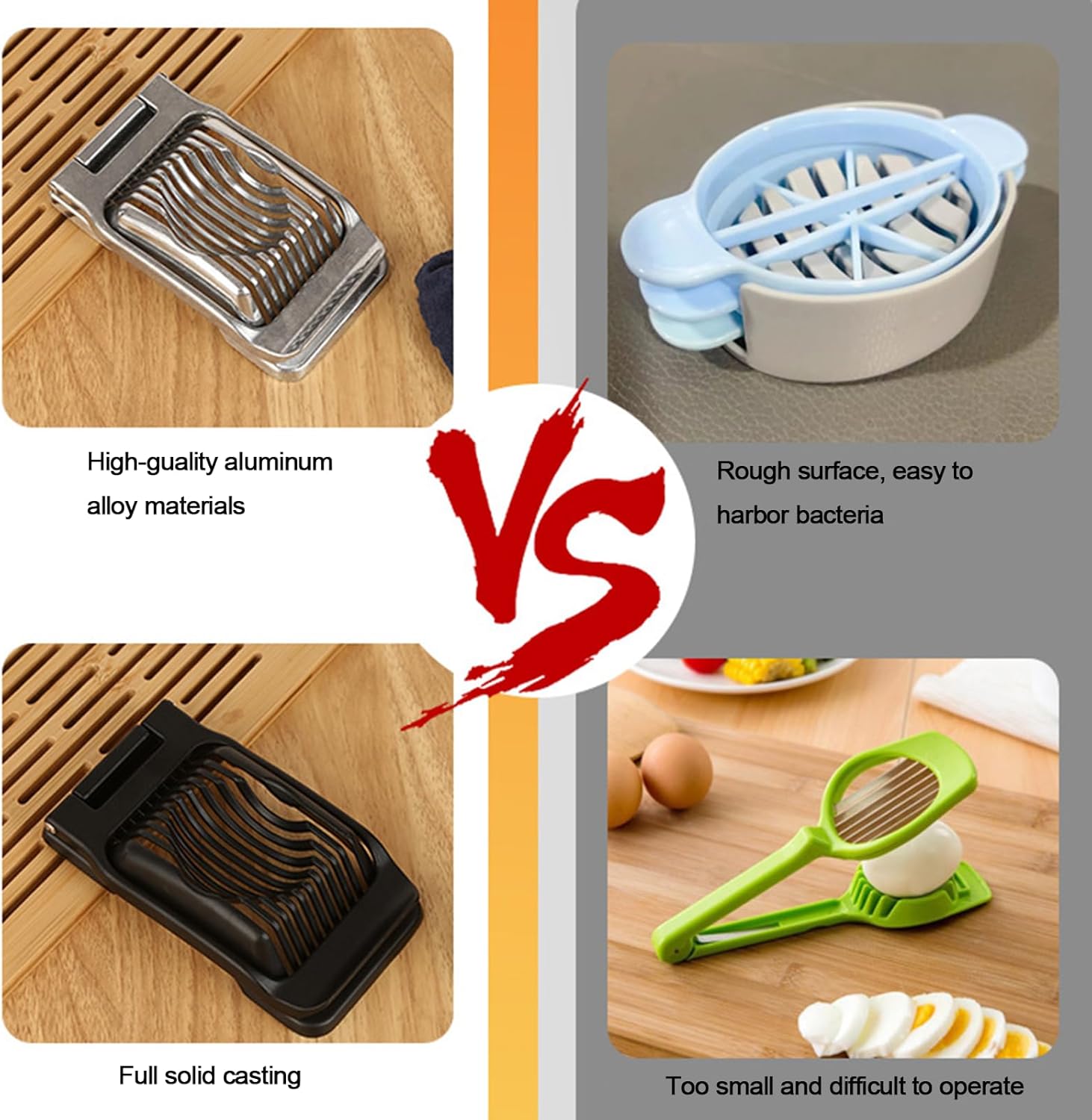 - π₯ Precision Slicing with Stainless Steel Wires Equipped with sharp, high-tension stainless steel wires, this egg slicer cuts hard boiled eggs into perfect, even slices. Ideal for salads, sandwiches, and party platters.