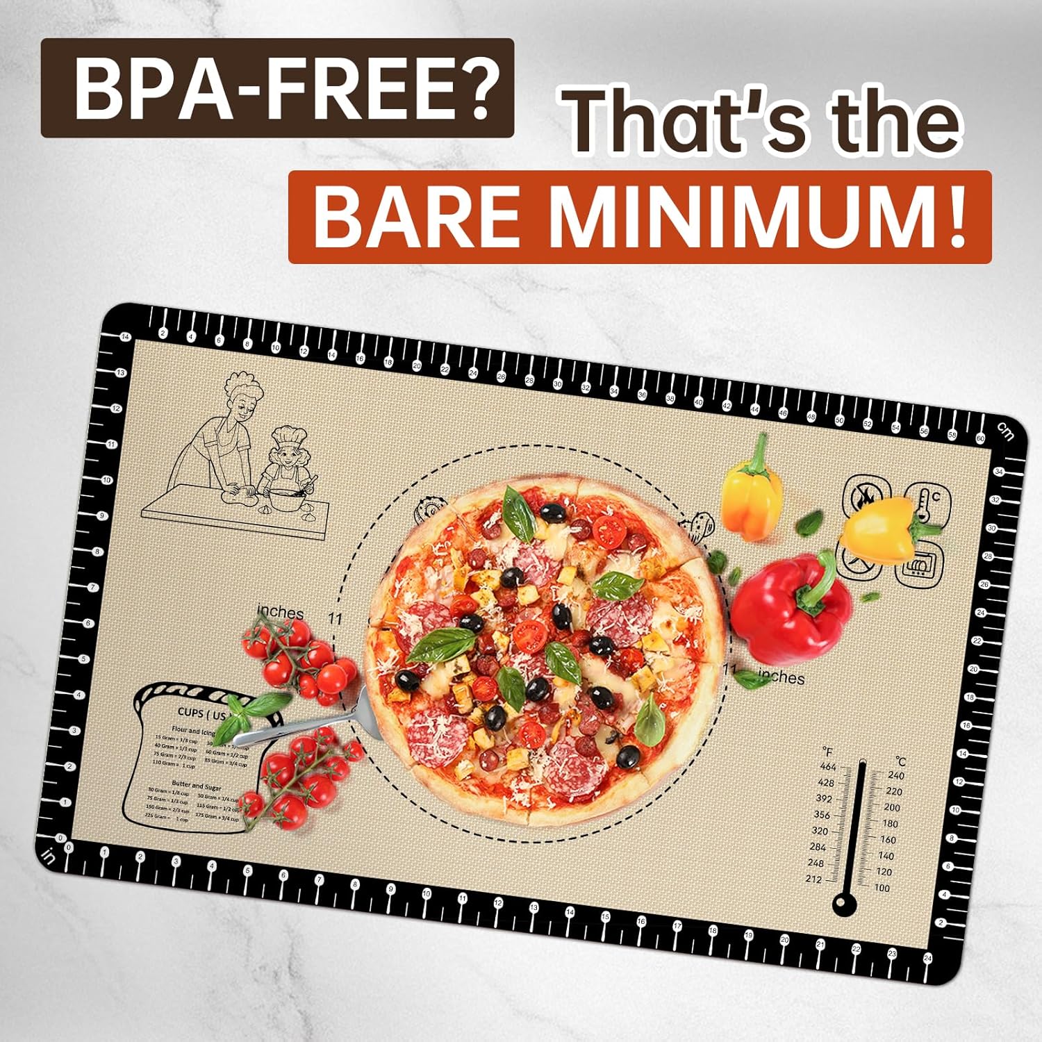 - ใ ๐ฟ ๐๐ฎ๐ฅ๐ญ๐ข-๐ฉ๐ฎ๐ซ๐ฉ๐จ๐ฌ๐ & ๐๐๐๐ญ ๐๐๐ฌ๐ข๐ฌ๐ญ๐๐ง๐ญใ๏ผChef-approved silicone Cooking mat works on ๐๐จ๐ฎ๐ง๐ญ๐๐ซ๐ญ๐จ๐ฉ๐ฌ, ๐ฆ๐๐ซ๐๐ฅ๐, ๐จ๐ซ ๐๐ฏ๐๐ง ๐๐๐ ๐ ๐ซ๐ข๐ฅ๐ฅ๐ฌ (-40ยฐF to 480ยฐF). Replace parchment paper & reduce wasteโsaves $50/year on disposables! It is easy to clean and dishwasher safe for this heat resistant and non slip sourdough silicone Bread mat.