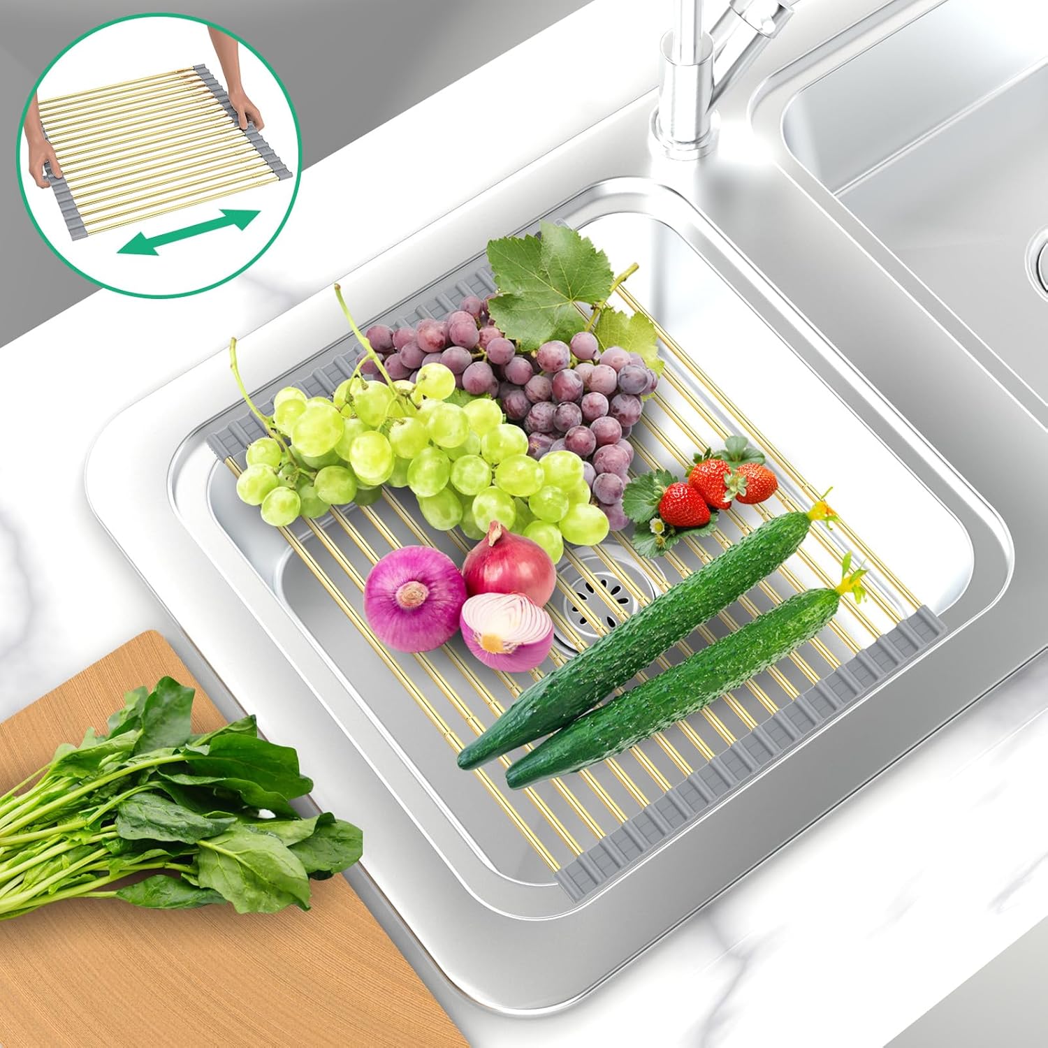 - 【Easy Clean Roll Rack Over Sink】Both sides of the roll over sink drying rack is made of high-temperature food-grade silica gel. ARAINY rolling dish rack over sink can be washed directly with water or placed in the dishwasher for cleaning