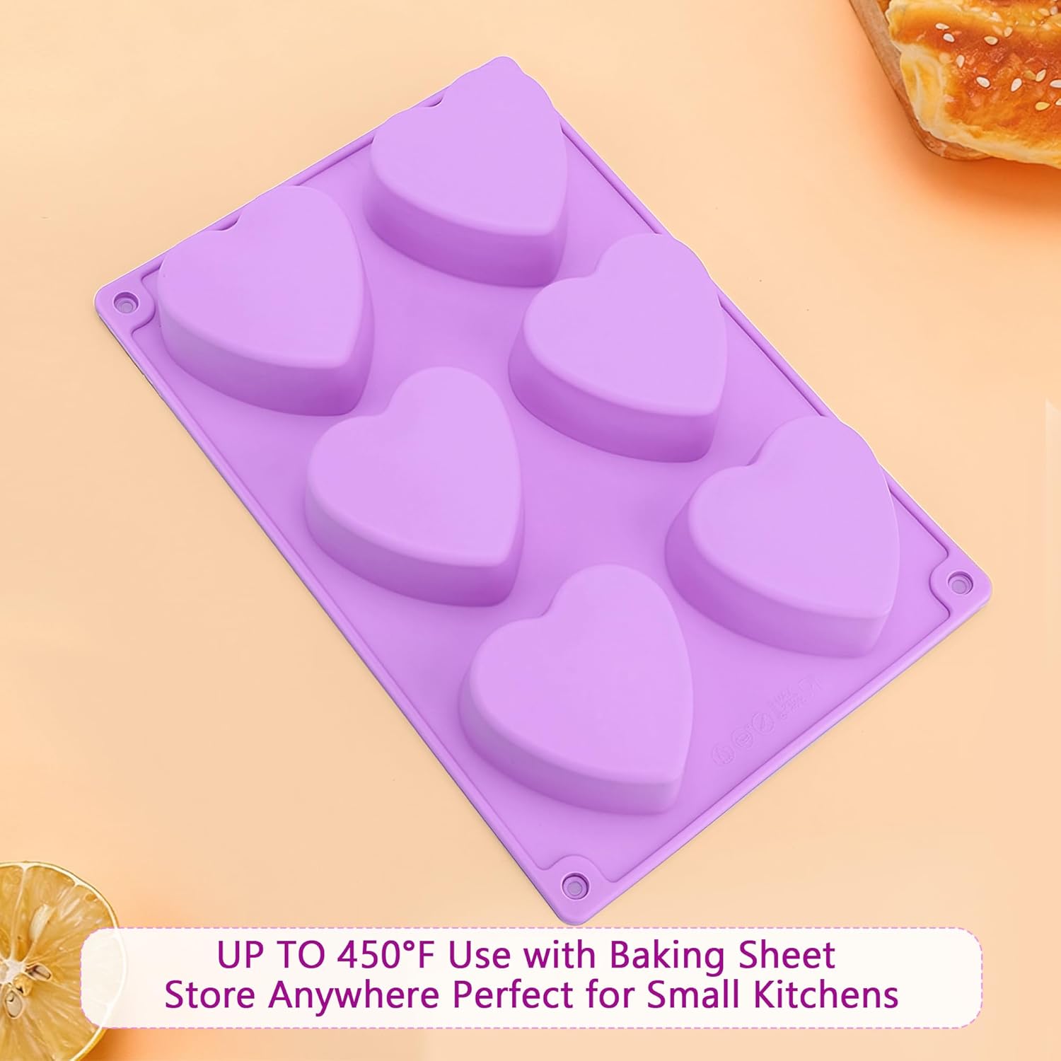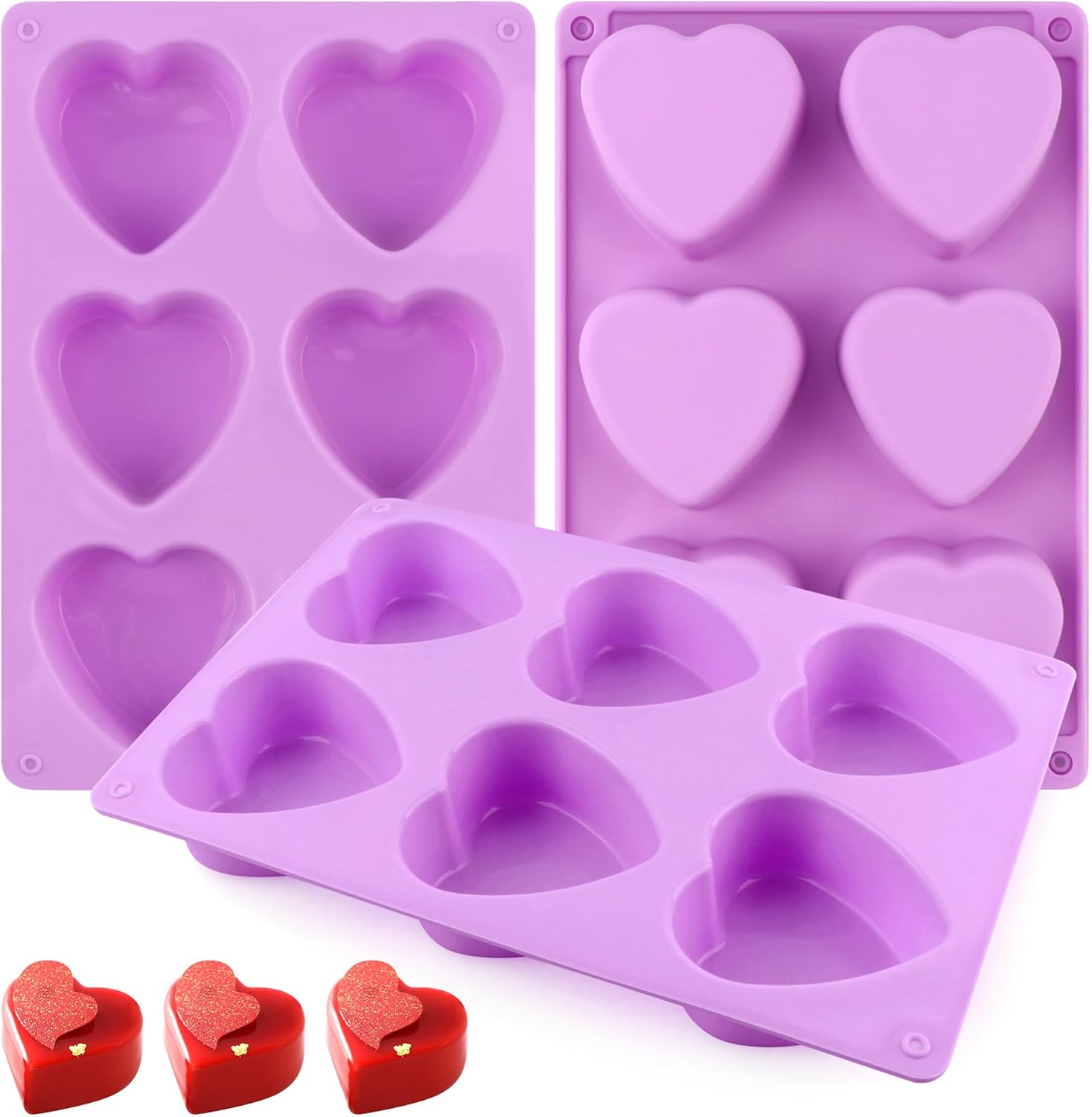 3-Pack 6-Cup Silicone Muffin Pans, Nonstick Cupcake Baking Molds, BPA/PFA-Free, Dishwasher & Oven Safe Heart-shaped Purple