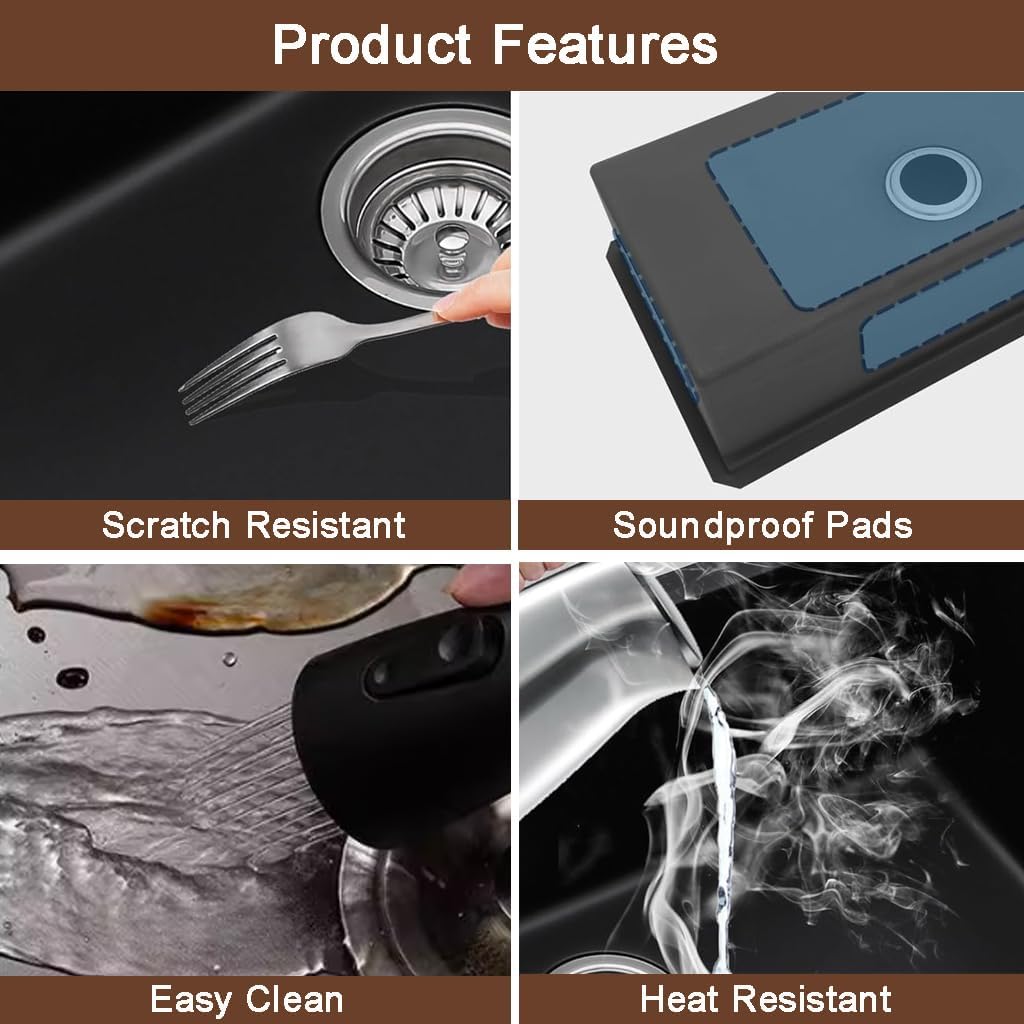 - ★【Bottom of the sink】Thicker and softer mute pad and anti-condensation coating, so it can provide an extra level of soundproofing and protect the cabinet. Multiple installation. TOP-Mount / Drop-in Mount / UnderMount installation.