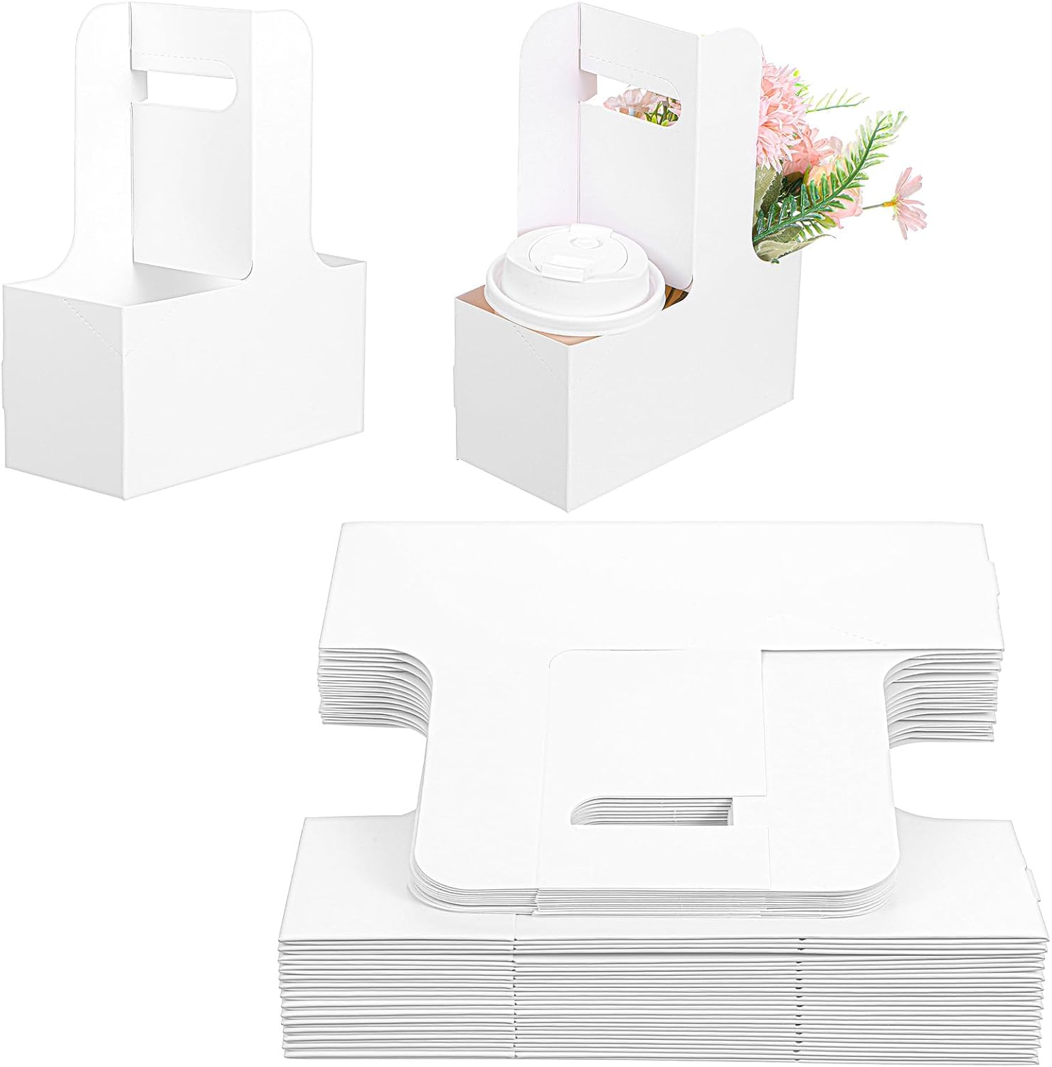 - Wide Application: The disposable drink cup holder package contains a total of 30 white cardboard double cup drink holders. The paperboard drink caddy is suitable for fixing and transporting a wide range of drinks such as coffee, juice, milkshake. Also, the cup carrier with handle can be used in cafes, restaurants coffee shops, etc. as a package that can hold multiple drinks,This cup holders for drinks is more than just a cup holder, it can also be used to hold snacks, small flower basket