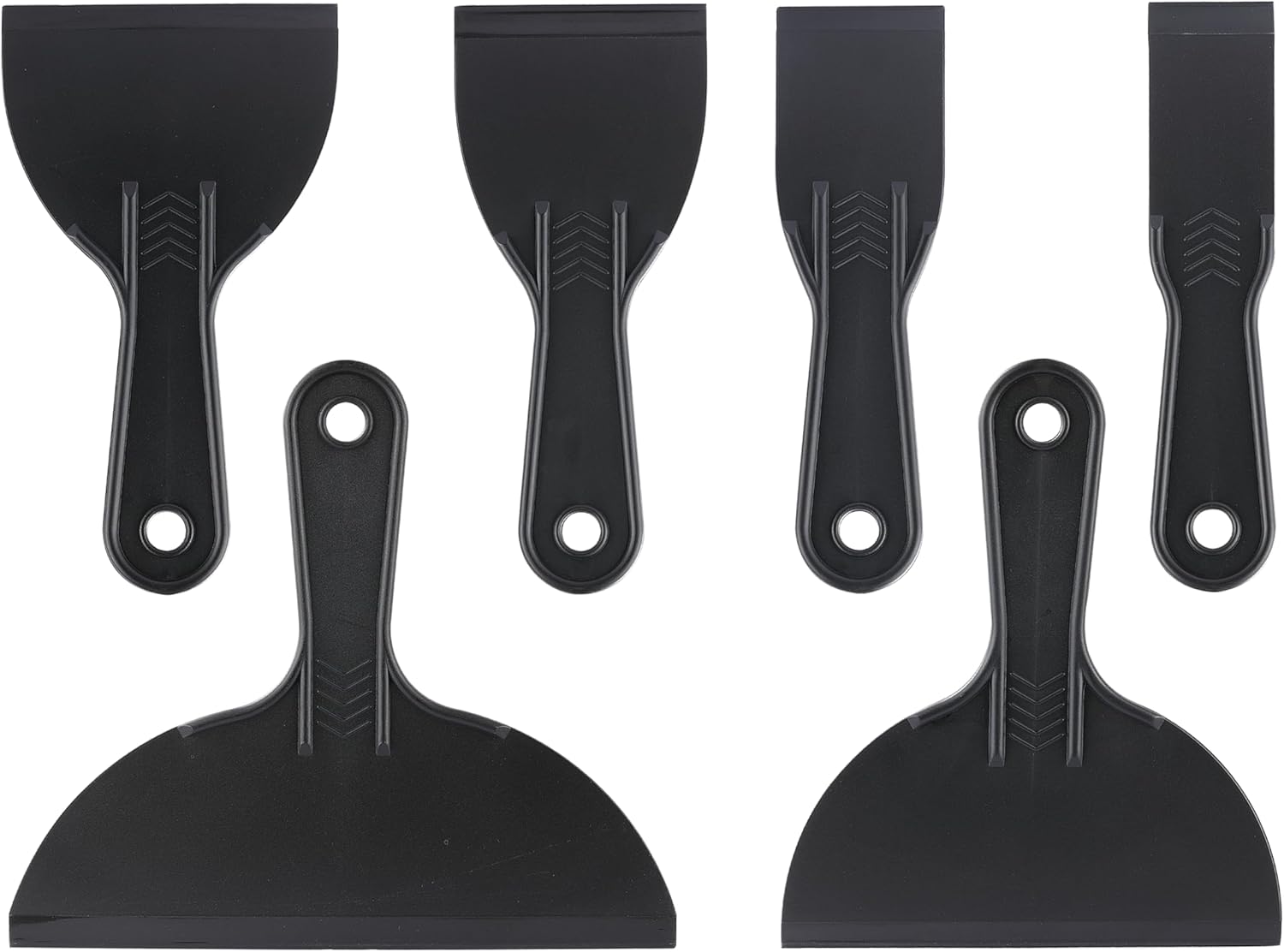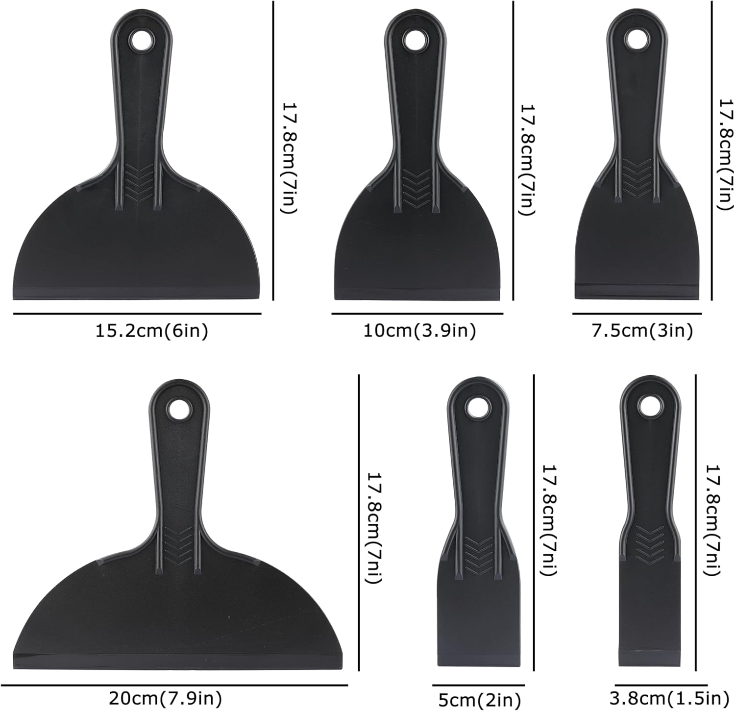 6 Pack Plastic Putty Knife, Durable Plastic Scraper Tool with No-Slip Grip for Spackle, Spreader, Non Scratch and Easy Cleaning Spackle Knife, Putty Knife Set, Black