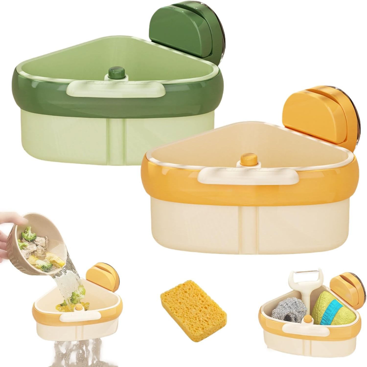 Suction Cup Sink Corner Rack, 2025 Upgraded Automatic Dumping Sink Strainer Basket, Suction Cup Press Sink Drainer Basket, No Drilling Corner Sink Strainer for Food Waste (Mix, 2Pcs)