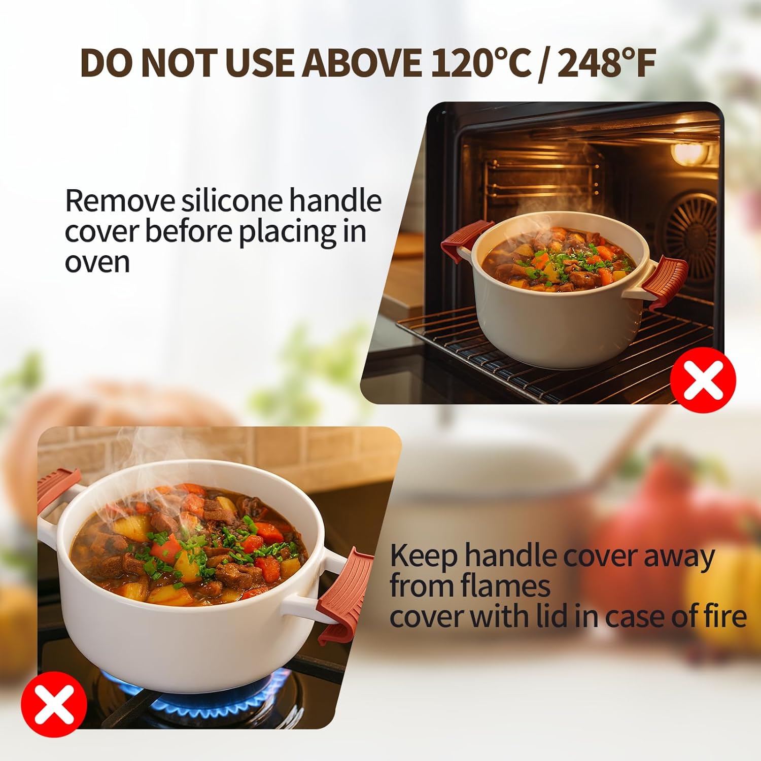 - Anti-Slip Safety Grip: Features honeycomb texture on the surface and internal silicone ribs for enhanced friction, ensuring a secure grip. Ergonomic design fits snugly on handles, providing stability when moving heavy, hot cookware.