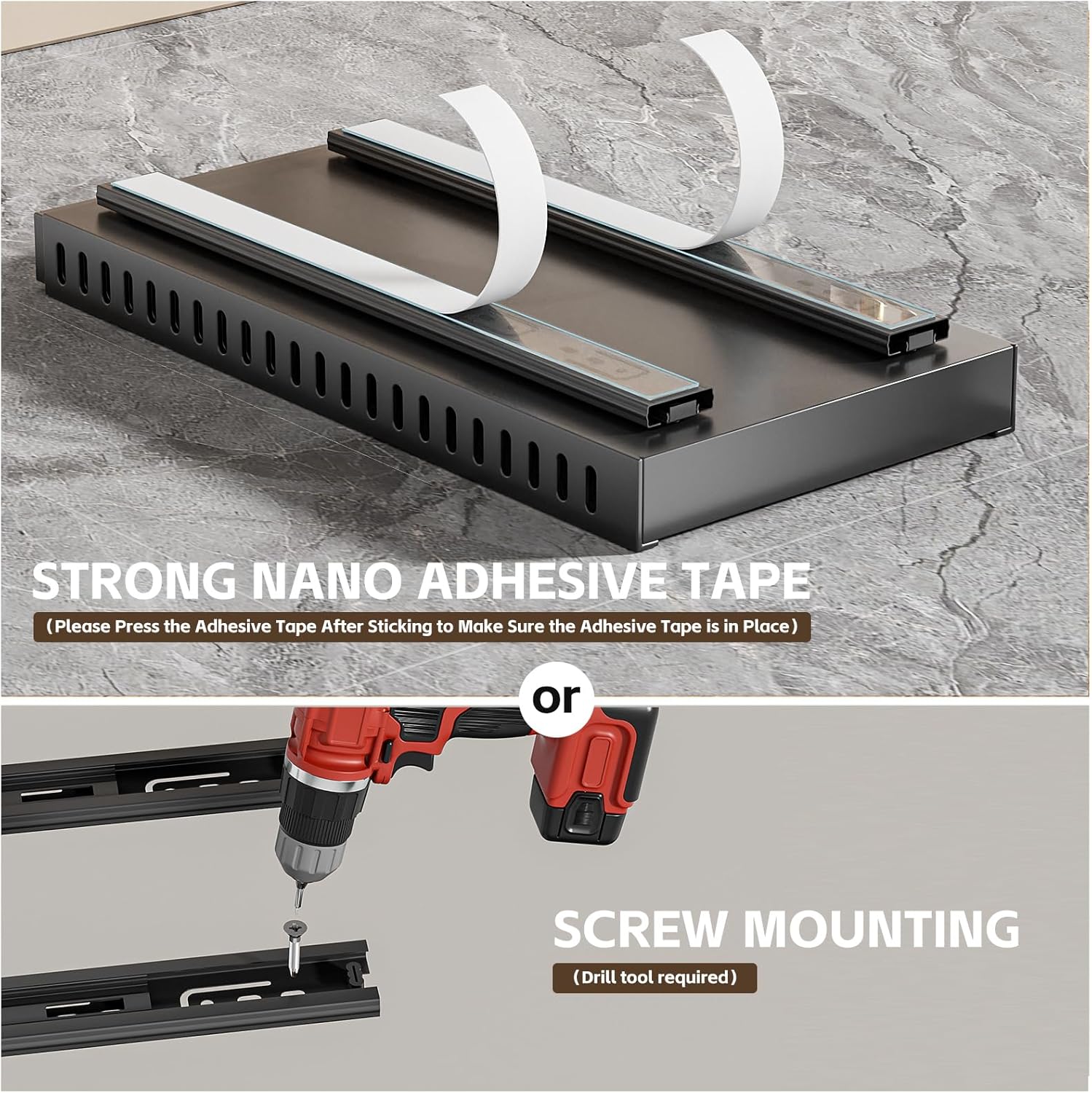 - 2 Mounting Options ββ This pull out cabinet organizer has two different installation methods: no-drill installation and screw-drill installation, which can be installed according to your needs (if you have the need to store heavy objects, drilling can provide better stability), and the body of our pot racks can also be removed by wrenching on the bottom slide catch after drilling, which is convenient for the secondary remodeling of the cabinets