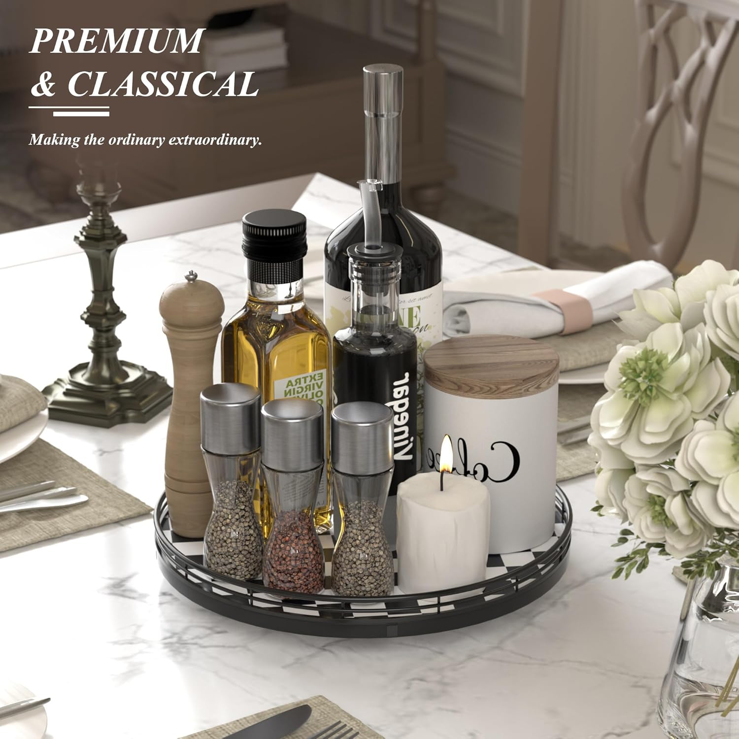 - COMPACT & DECORATIVE – Perfect as a mini decorative lazy susan, a small kitchen table centerpiece, or a table kitchen caddy, bringing both function and charm to your tabletop.
