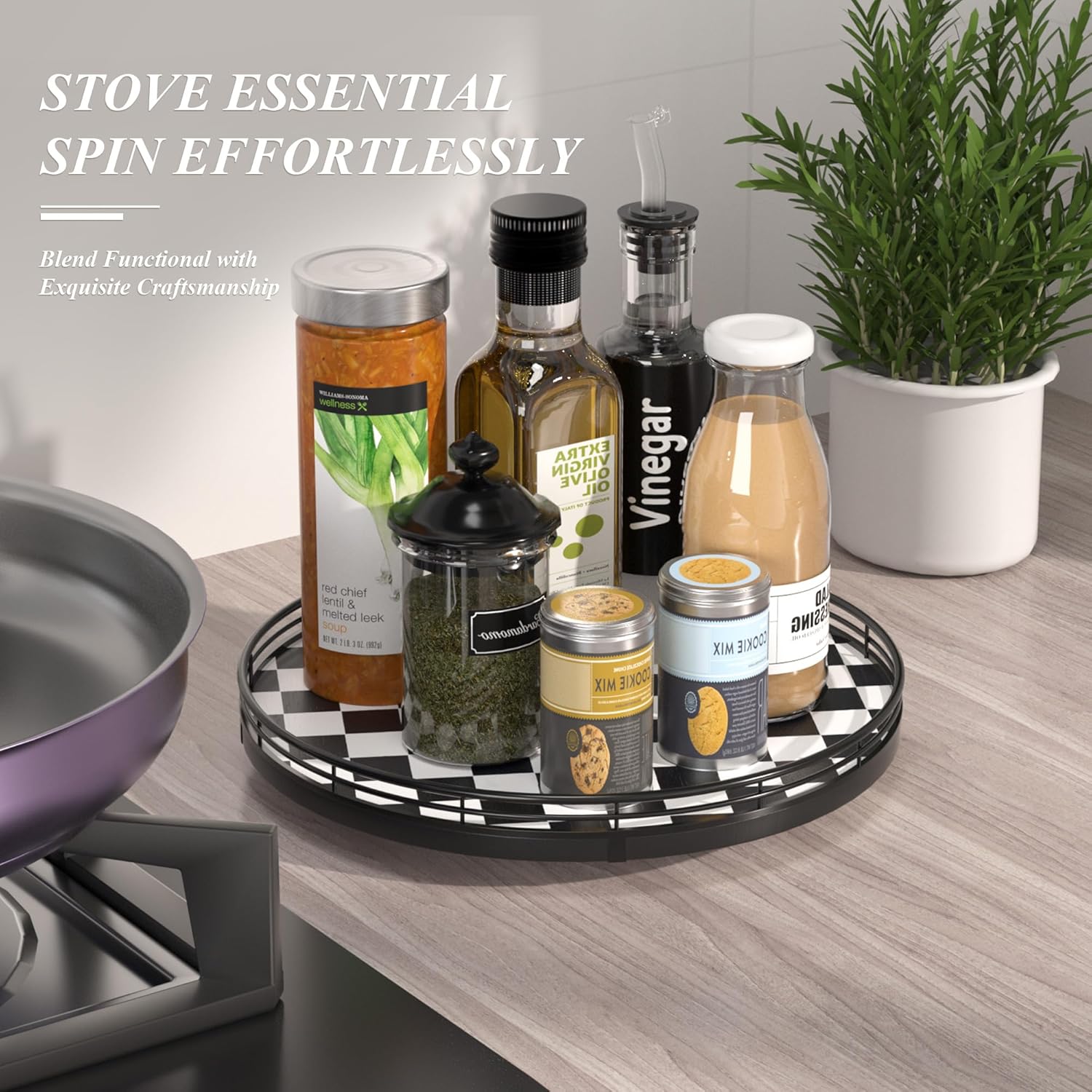 - QUALITY CRAFTSMANSHIP & STYLE – Built with a durable checkered oakwood base and iron frame. From a black check serving tray to a cute lazy susan for table top, it blends seamlessly with modern pottery barn decor styles.