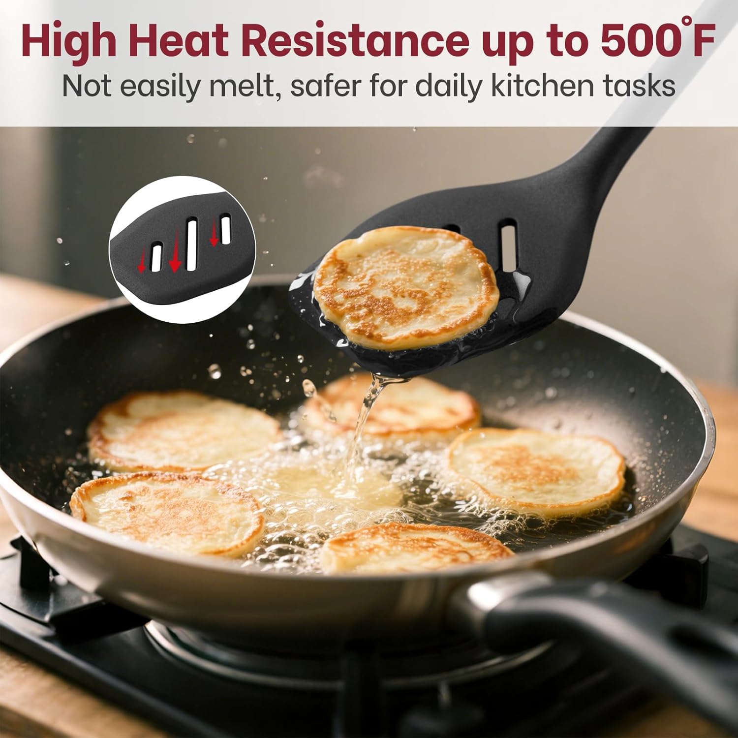 - 2 Sets & Multi-Purpose to Use: This set of solid and slotted spatulas adapts to diverse cooking tasks, like turning eggs, lifting pancakes, or draining fried foods, an indispensable cooking utensils set for the modern kitchen
