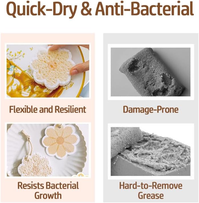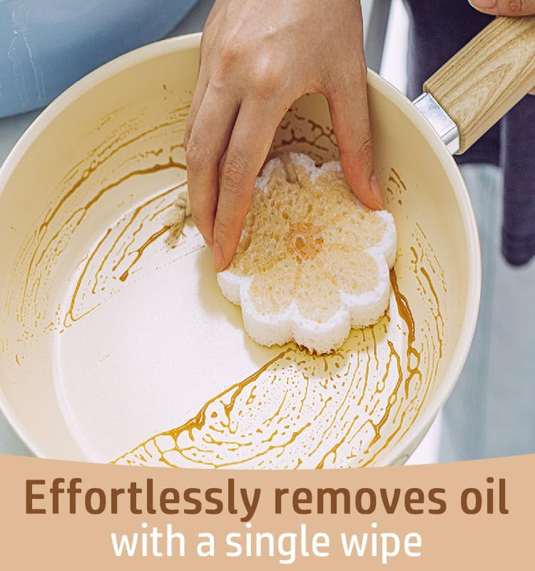 Flower-Shaped Wood Pulp Sponge Scrubber, sponges Kitchen– Dual-Sided Natural Dish Sponge,sponges for Dishes, Eco-Friendly, Quick-Drying, Gentle on Non-Stick Pans (8.5×1.8cm) (10pcs)