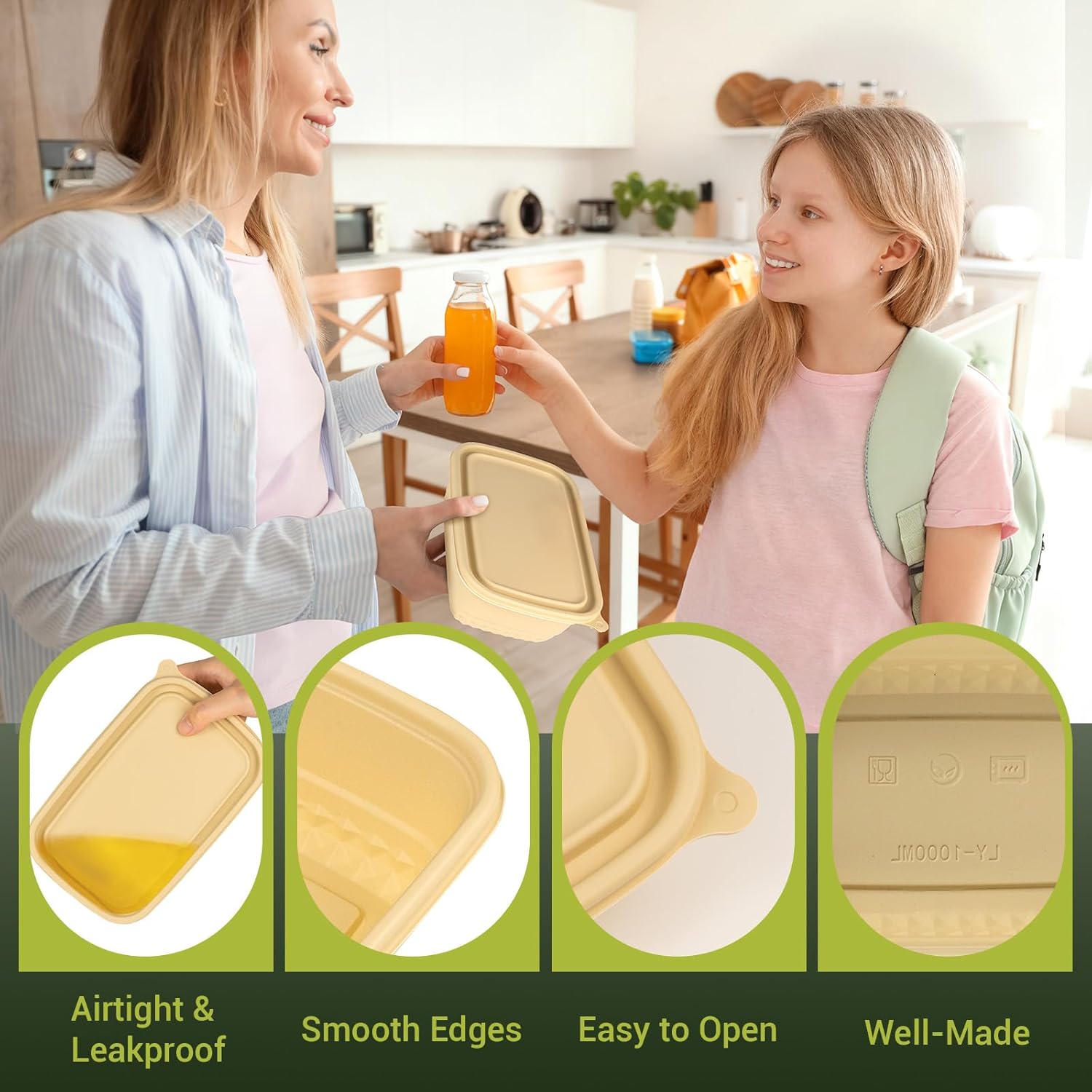 25Pack(50pcs) Meal Prep Containers Reusable, 32oz Bamboo-Powder Food Containers with Lids, Plant-based To Go Containers for Lunch - Microwave, Freezer, Dishwasher Safe