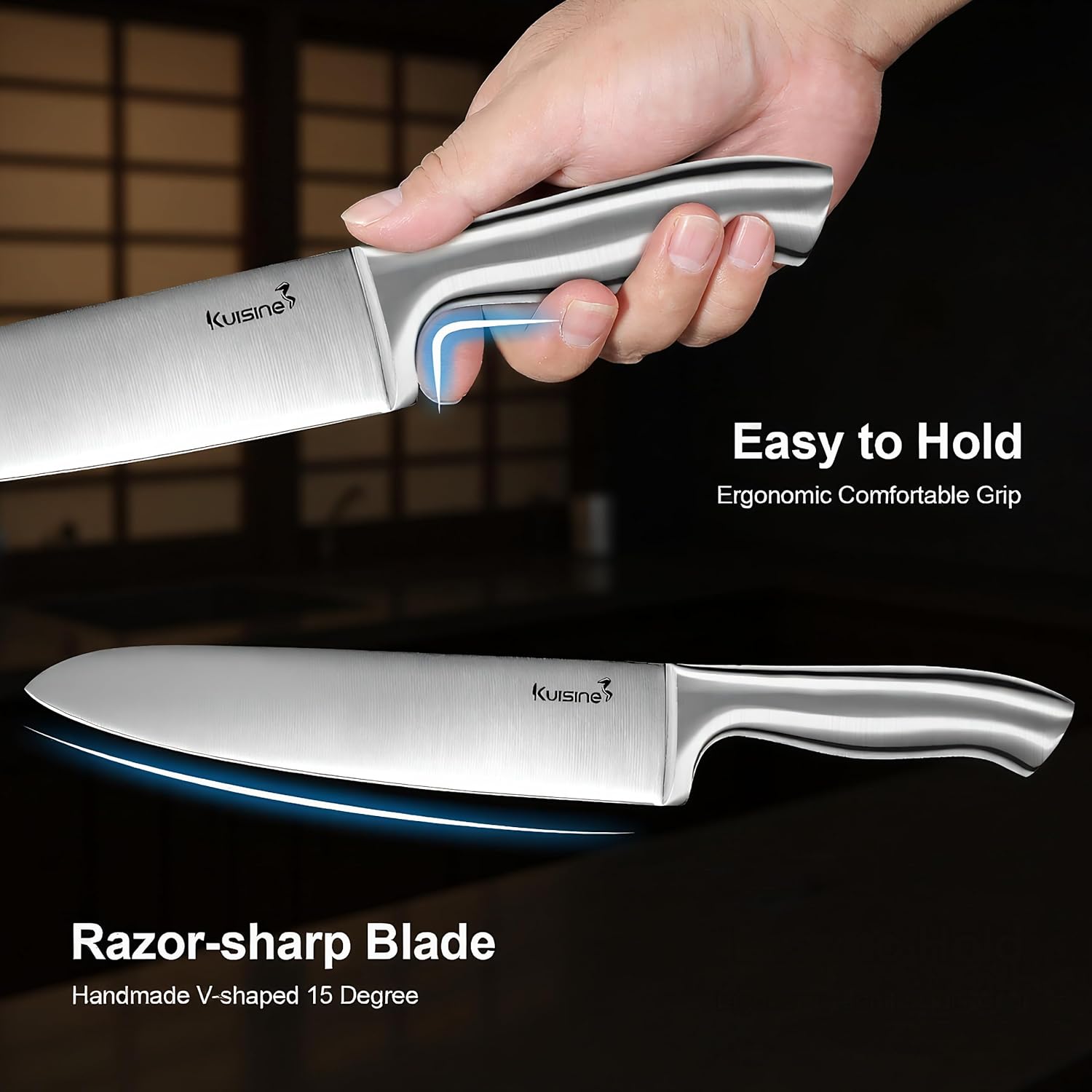 - Top Quality Knife Set:KUISINE knife block set is made of premium high carbon stainless steel ensuring the quality of knife better, its performance exceeds other brands' products and ISO standards.