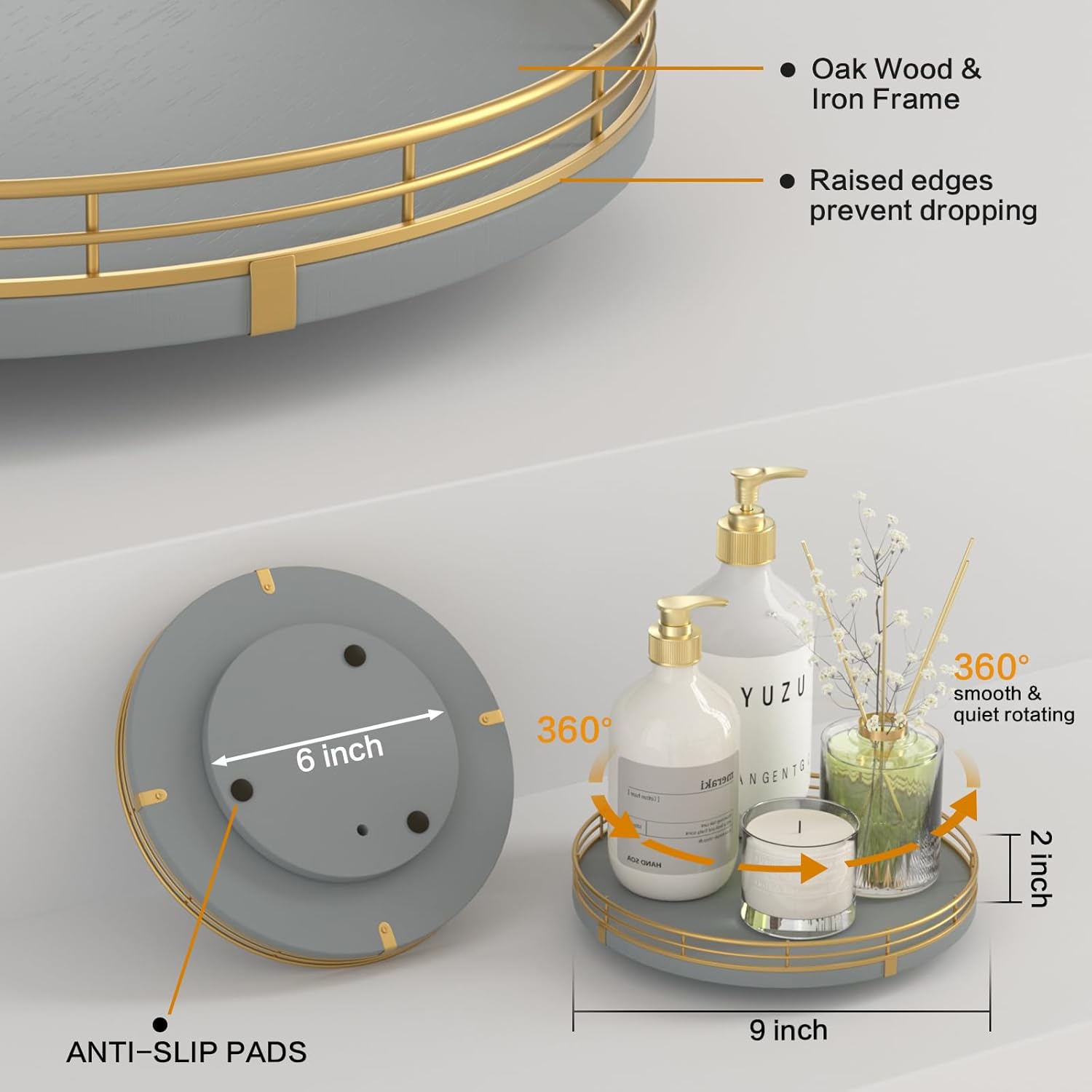 - 【Premium Oak Wood with Gold Metal Frame】Crafted from durable oak wood and a stylish iron-gold frame, this wooden lazy susan turntable adds both elegance and functionality to your home. Ideal as a wooden lazy susan for table top or a countertop lazy susan for kitchen decor.