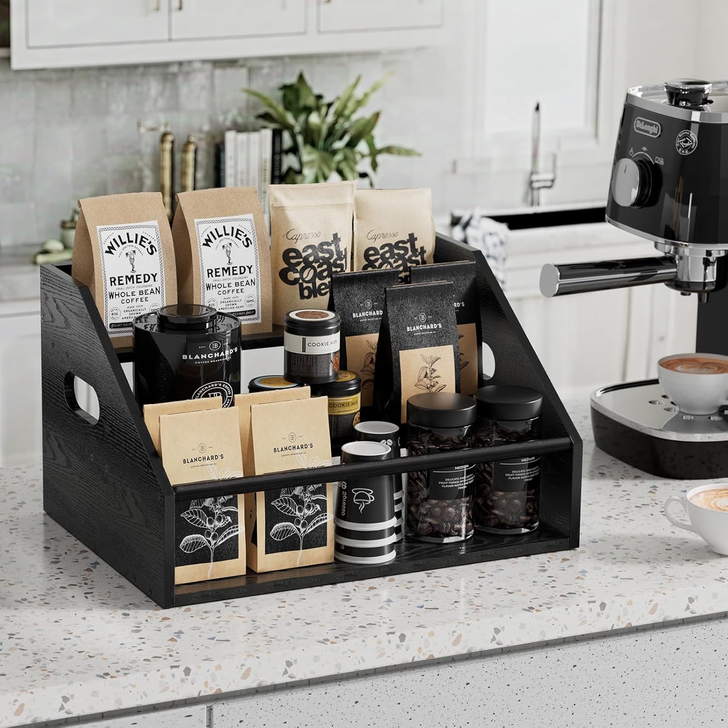 - Vintage-inspired design – each plank of this 3-tier wine bottle holder showcases its own unique natural wood grain and features a vintage-style aesthetic, effectively elevating the look of any home bar, coffee bar, or kitchen countertop. It’s the perfect gift for wine and spirits enthusiasts, coffee lovers, liquor collectors, and party aficionados.