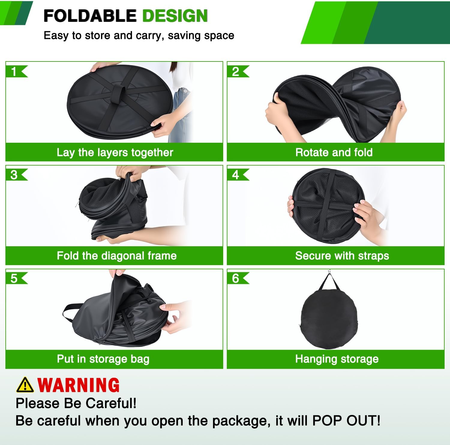 - EASY TO STORE AND ZIPPER DESIGN: The foldable mesh drying racks is easy to carry and store. Each layer features a black zipper closure that opens and closes easily and slides smoothly, effectively protecting herbs from wind, birds, and dust. You can place this cannabis drying rack anywhere, such as outdoors, on a balcony, in a grow tent, in a garage, or in a closet. (OPEN WARNING: Be careful when you open the package, those nets will POP OUT)