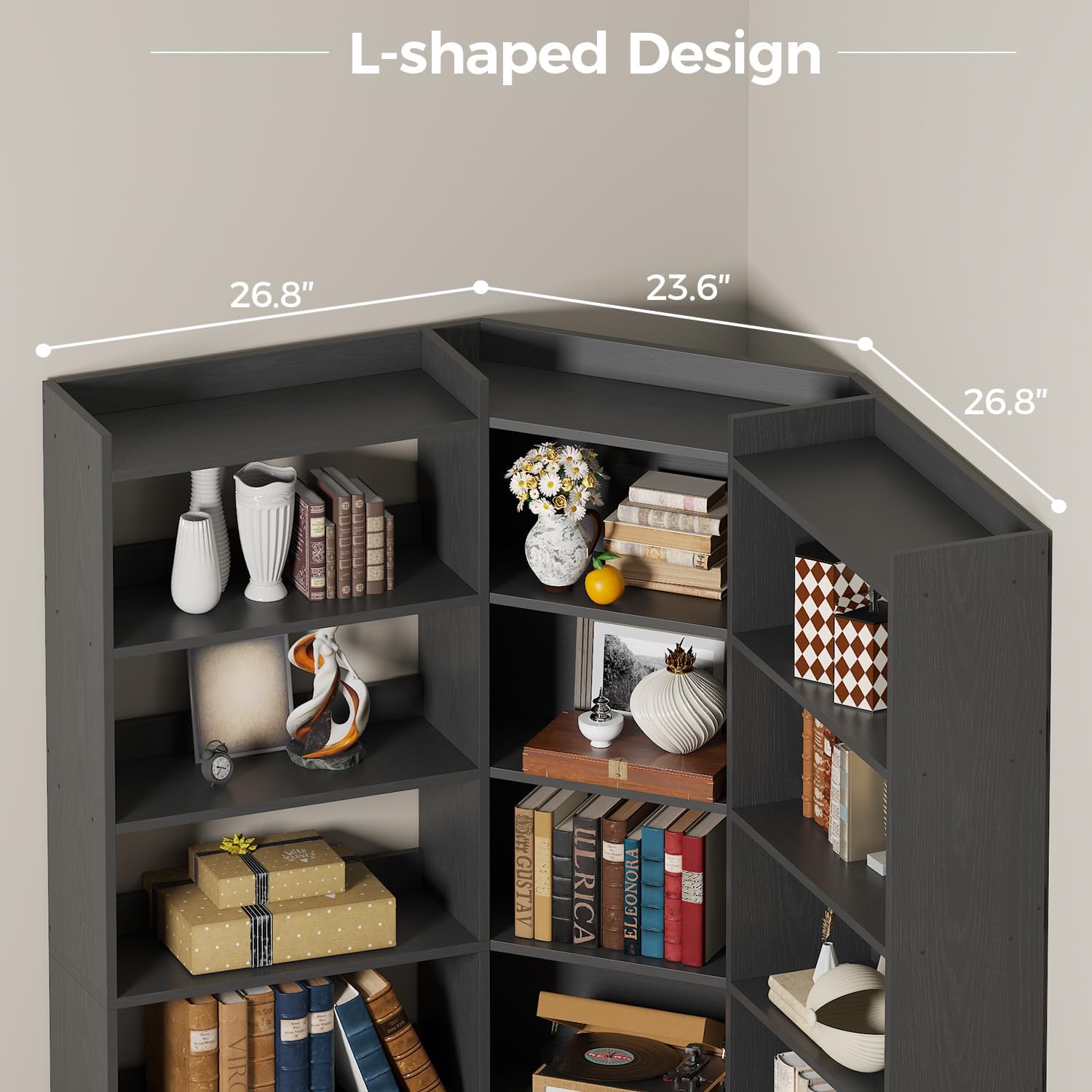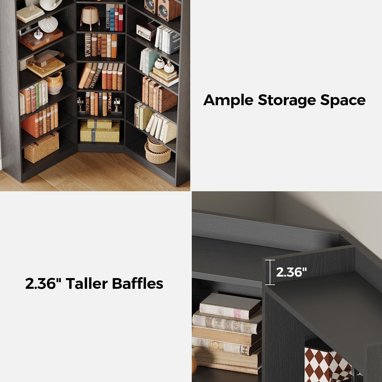 IRONCK Corner Bookshelf, 7-Tier Bookshelf with Storage, Corner Bookcases with Baffles Etagere Shelf for Living Room Home Office Bedroom, Black