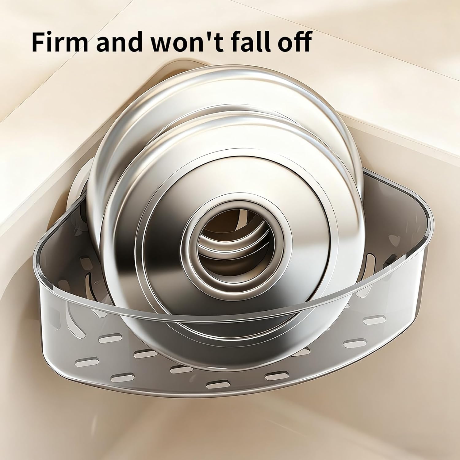 2PCS Suction Cup Sink Corner Rack,2 Size Suction Sinkware Organizer,Triangle Sink Strainer Basket with Drain Hole, Corner Sink Trash Catcher for Leak-Proof Food Waste Catcher for Clean Sink