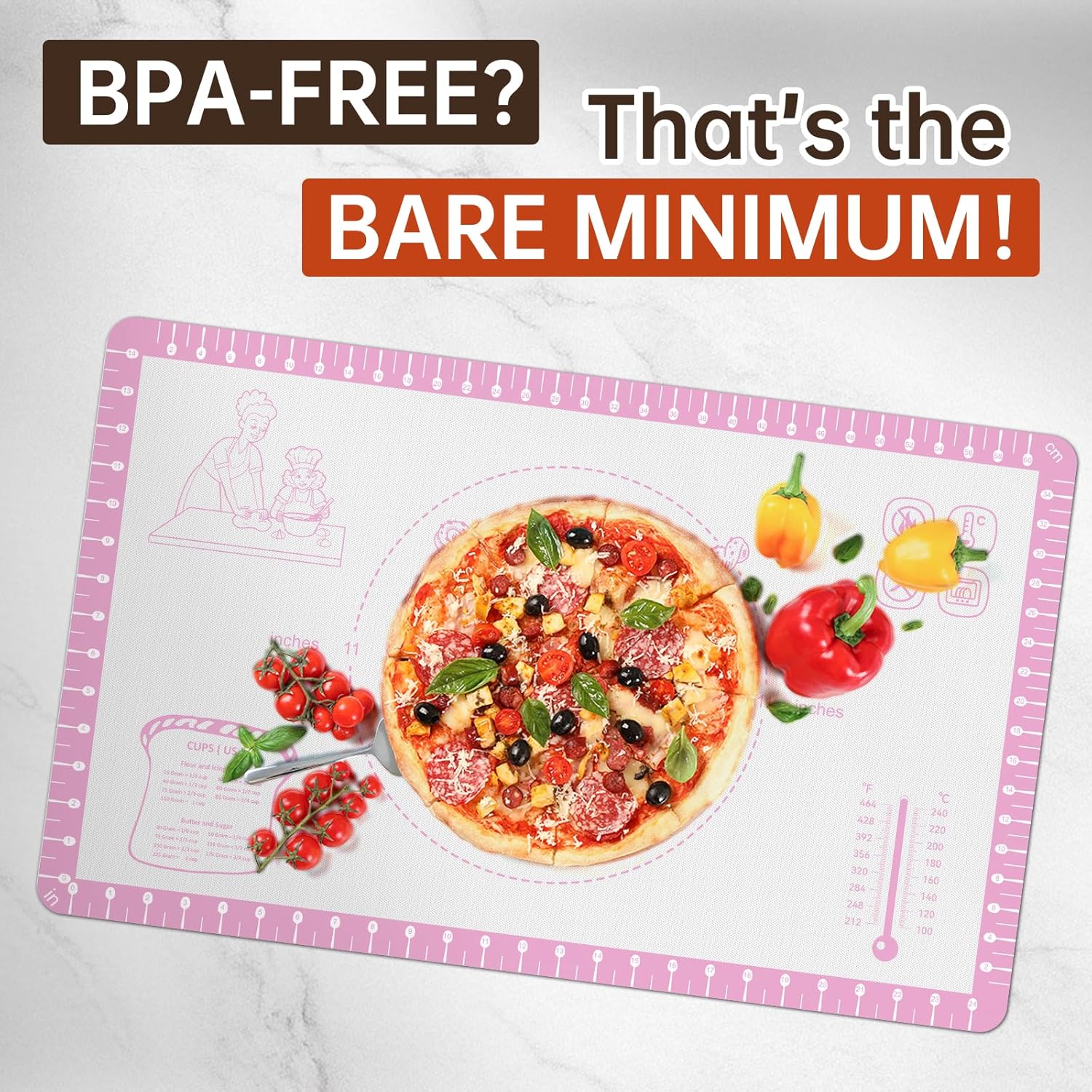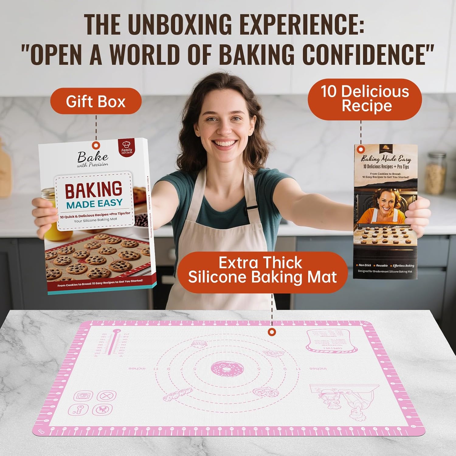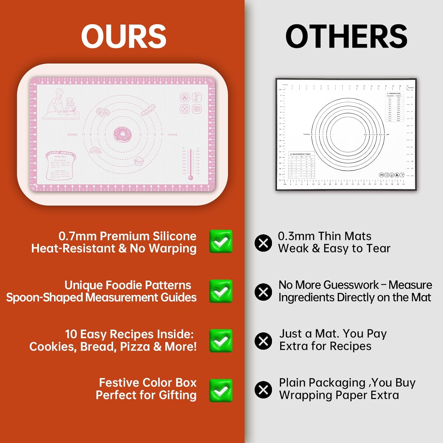 Non Slip Silicone Baking Mat With 10 Useful Recipes, Non Stick Dough Mat for Rolling Out, Silicone Mat for Baking,Cookie, Macaron, Pizza, Surdough, Extra Large and Oven Safe