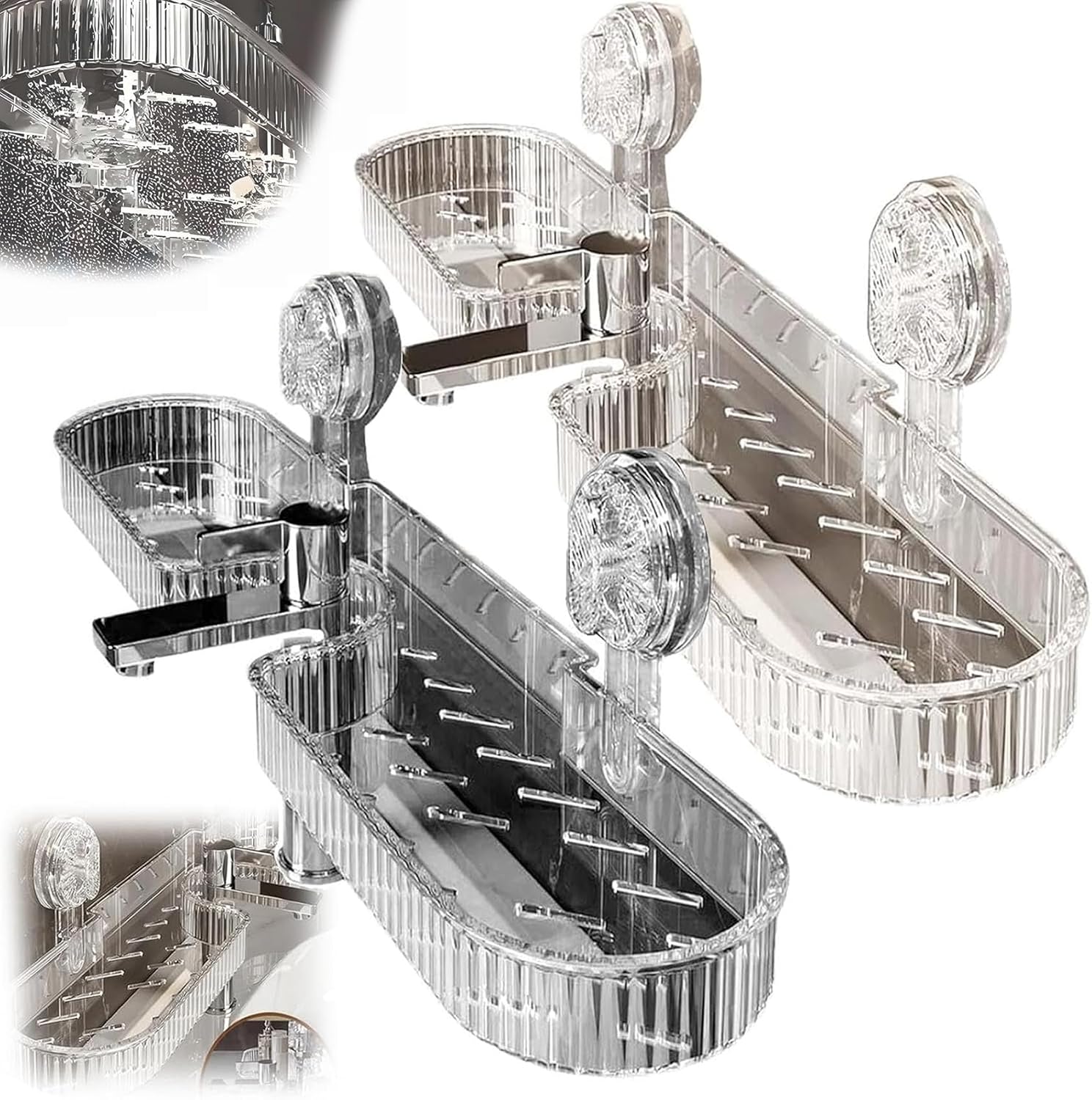 Universal Removable Faucet Storage Rack, No-Drill Bathroom Suction Storager Box, Thickened And Widened Panel Design, Water Automatically Drains Away, For Bathroom Kitchen (2 PCS MIX)