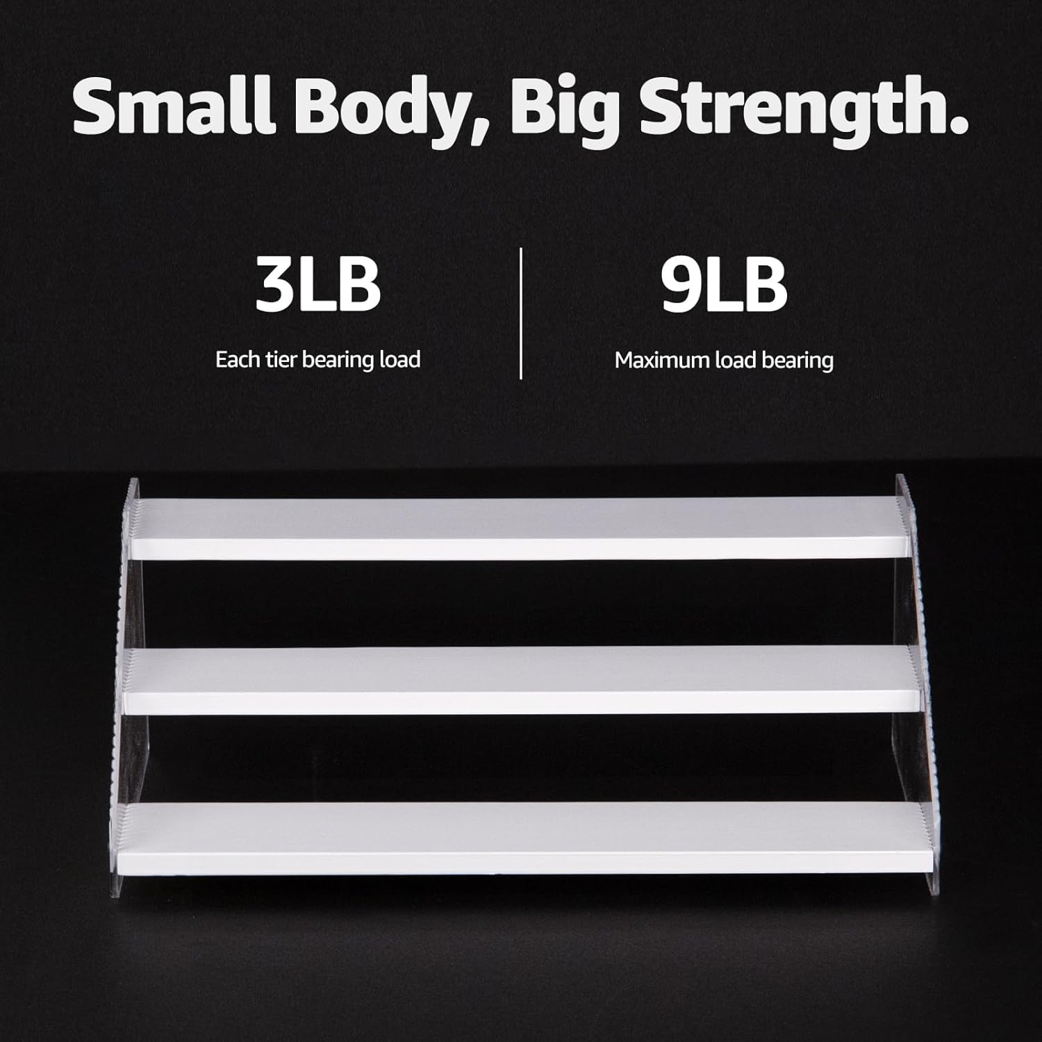 - Elegant & Sturdy: Risers display stands constructed from high-quality pine wood and corrugated acrylic, making it both aesthetically pleasing and fashionable, as well as durable and resistant to deformation, the spice shelf is a beautiful and robust addition to any space