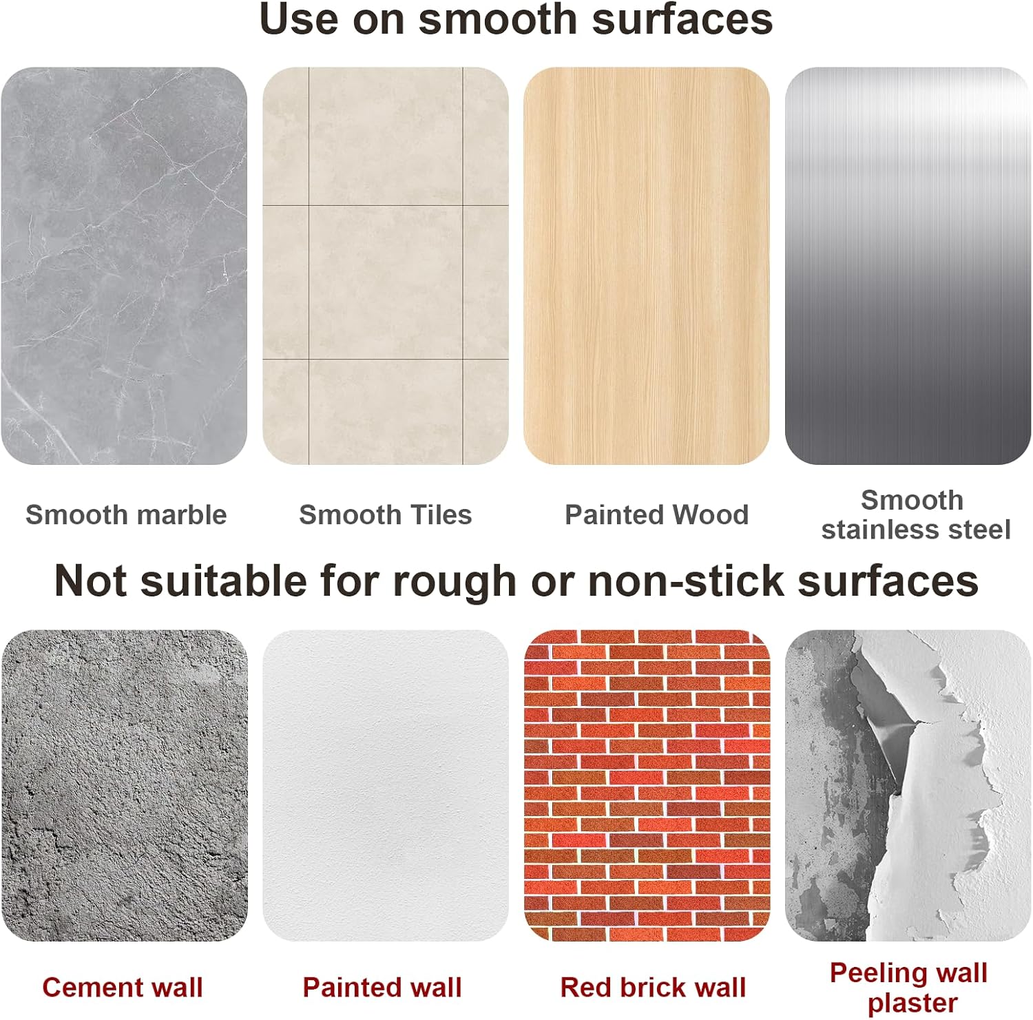 - Adjustable & Versatile – Pot cover holder rack fits 6-16" lids and works on smooth surfaces like tile, marble, or metal walls. Not suitable for cracked, rough, textured, glass, or plaster walls.