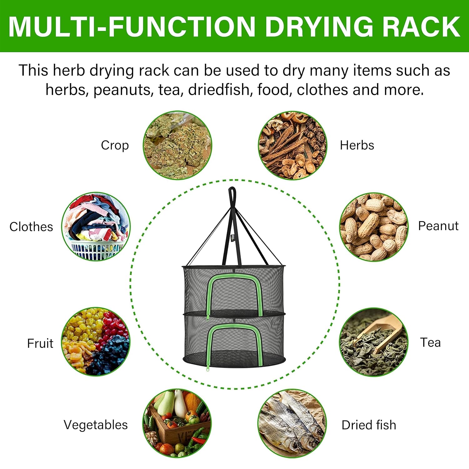 - Item Size: D24xH19.68 inch, 9.84 inch height of each layer, 2-layer, 2Ft wide; appropriate size to keep a great ventilation for drying process; strong wire frames, collapses flat for space-saving storage in accessory pouch