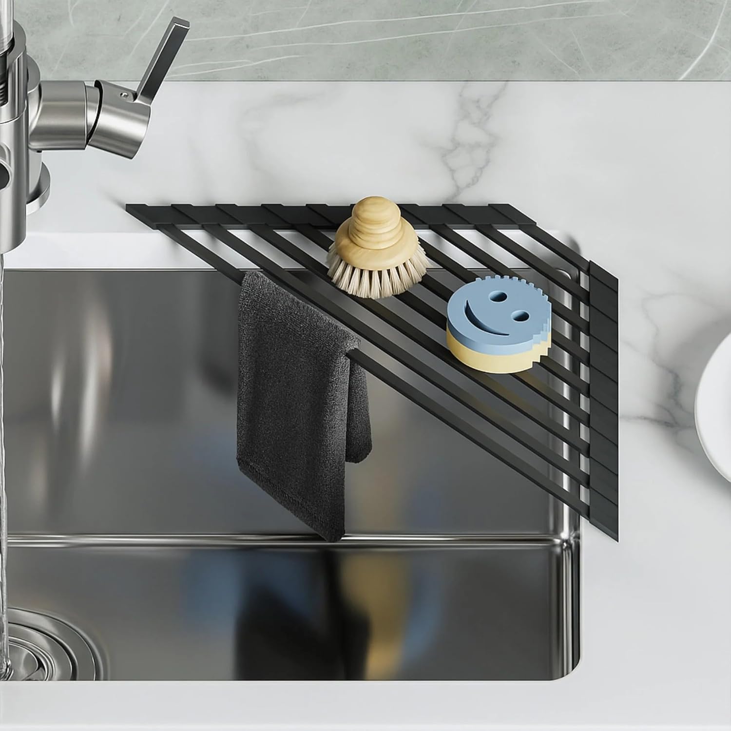 - Fits on Any Surface & Sleek Looks: Designed to stretch over sinks or lay flat on countertops, offering flexibility wherever needed. Smooth silicone finish delivers a modern look that blends seamlessly with any kitchen décor.