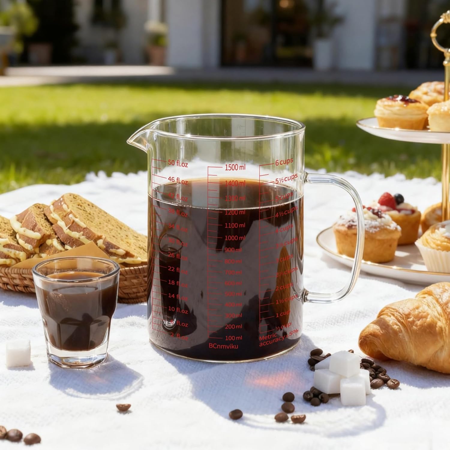 - 【Comfortable and Lightweight Design】: The high borosilicate glass measuring cup is lightweight and easy to handle, reducing strain on your wrists. This makes it perfect for various kitchen tasks, whether you're cooking, brewing coffee, or baking